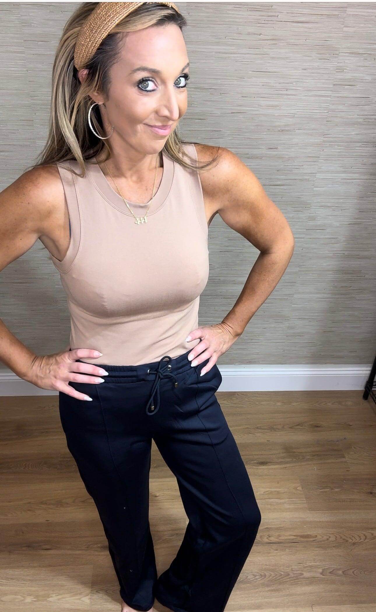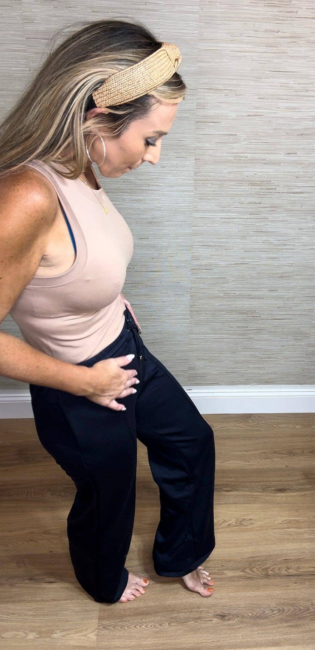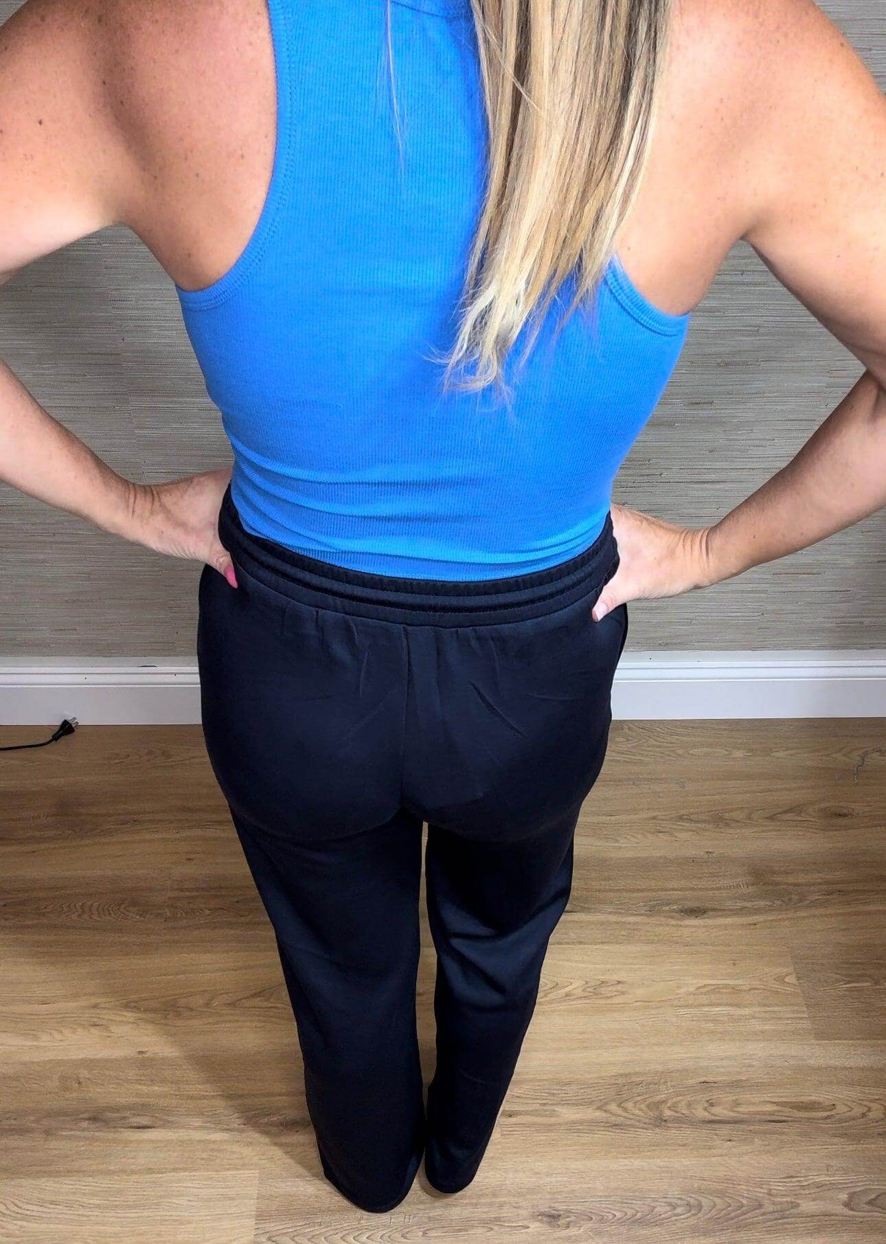 Expertly crafted for maximum comfort and style, The Roxy Pants are a must-have for any wardrobe. These navy blue pants feature elegant piping down the front and a convenient drawstring waist, making them both fashionable and functional. Elevate your everyday look with these ultra-soft and cozy pants.