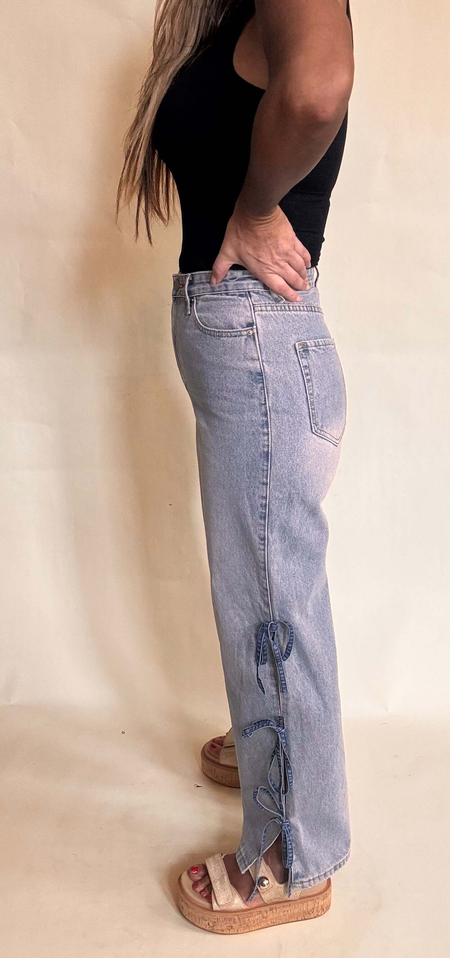 Add a playful touch to your wardrobe with these Bow Cutout Jeans! These unique jeans feature a quirky cutout design with a bow detail, adding a fun and stylish element to any outfit. Say goodbye to boring denim and hello to a playful twist on a classic style. Bow down to these quirky jeans!