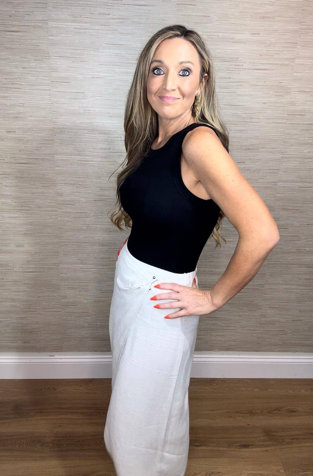 Indulge in luxury with our exquisite Linen Midi Wrap Skirt. Crafted from high-quality linen, this skirt effortlessly drapes around your figure for a sophisticated and exclusive look. The wrapped design adds a touch of elegance, making it a versatile piece for any occasion. Elevate your wardrobe with this timeless and chic addition.