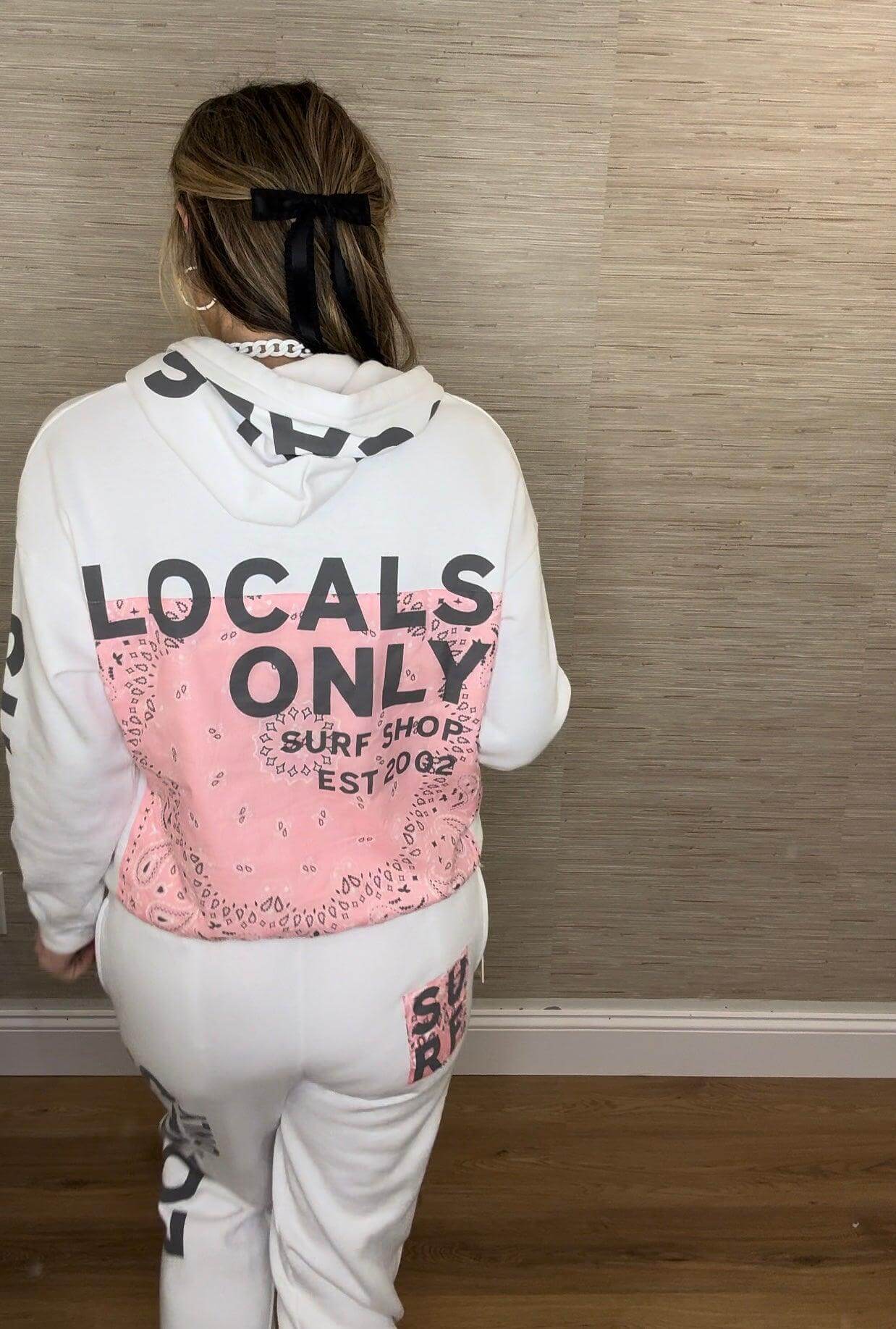 "Step up your style game with our Locals Only Patch Joggers. These comfy and stylish joggers feature a unique patch design, perfect for showcasing your love for your city or hometown. Stand out from the crowd and show off your playful personality with our quirky and fun joggers. (Locals only, we're taking over the fashion game!) "