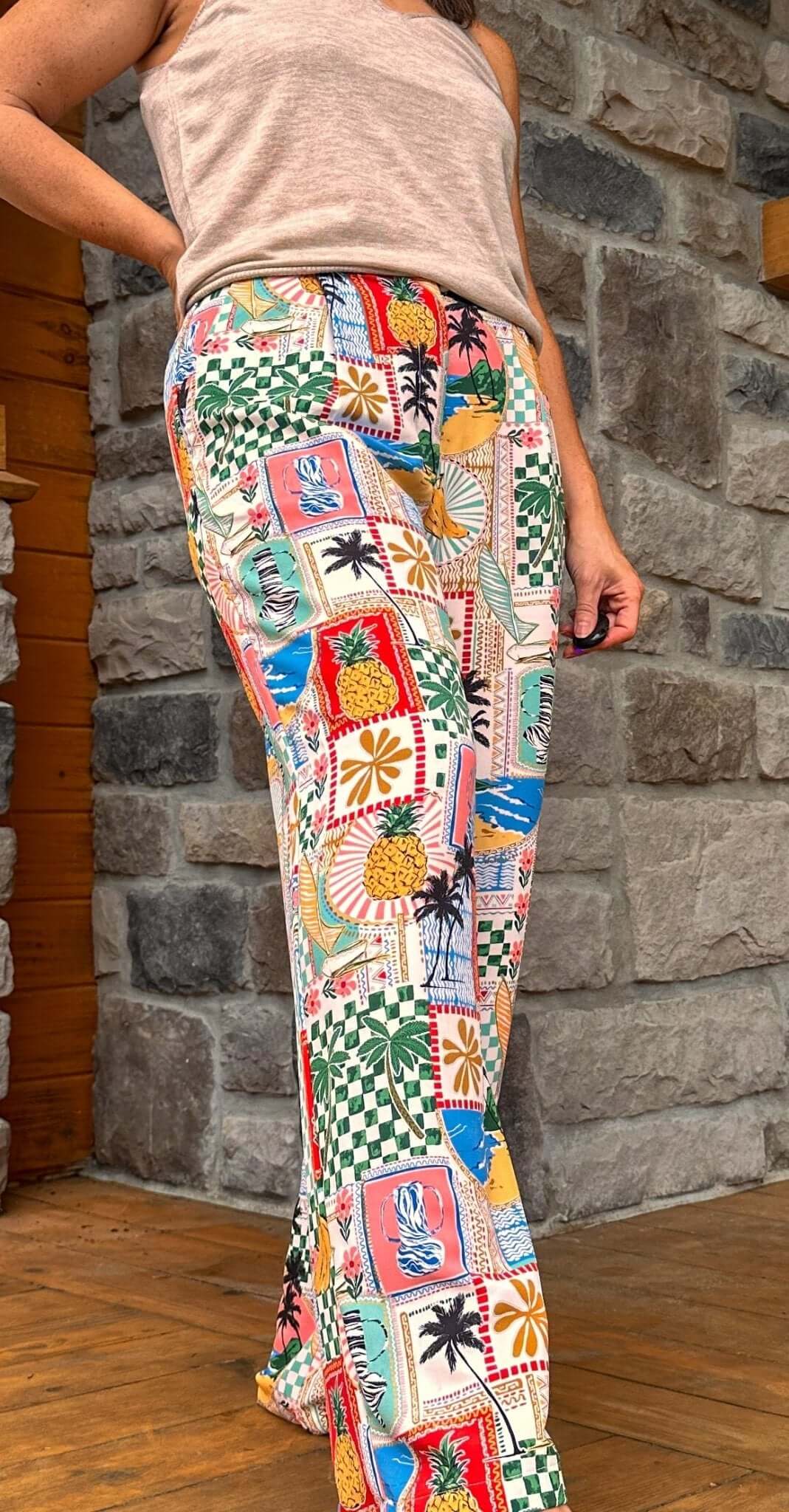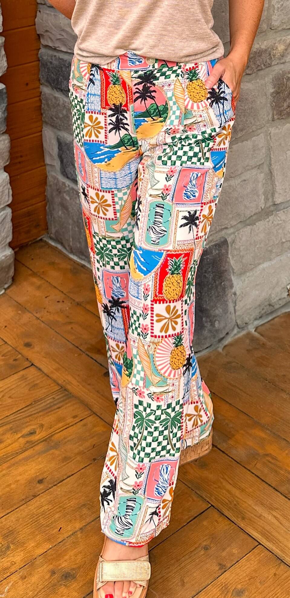 Meet The Sierra, lightweight, breezy summer pants featuring a soft tropical print and button fron closure (but elasticized in the back) waist—perfect for sun‑filled days. Crafted from a breathable woven cotton blend, these wide-leg pants are easy to style and machine washable (but be gentle) for effortless care. Combine comfort and seaside charm—pair them with your favorite tops for a carefree, polished look.