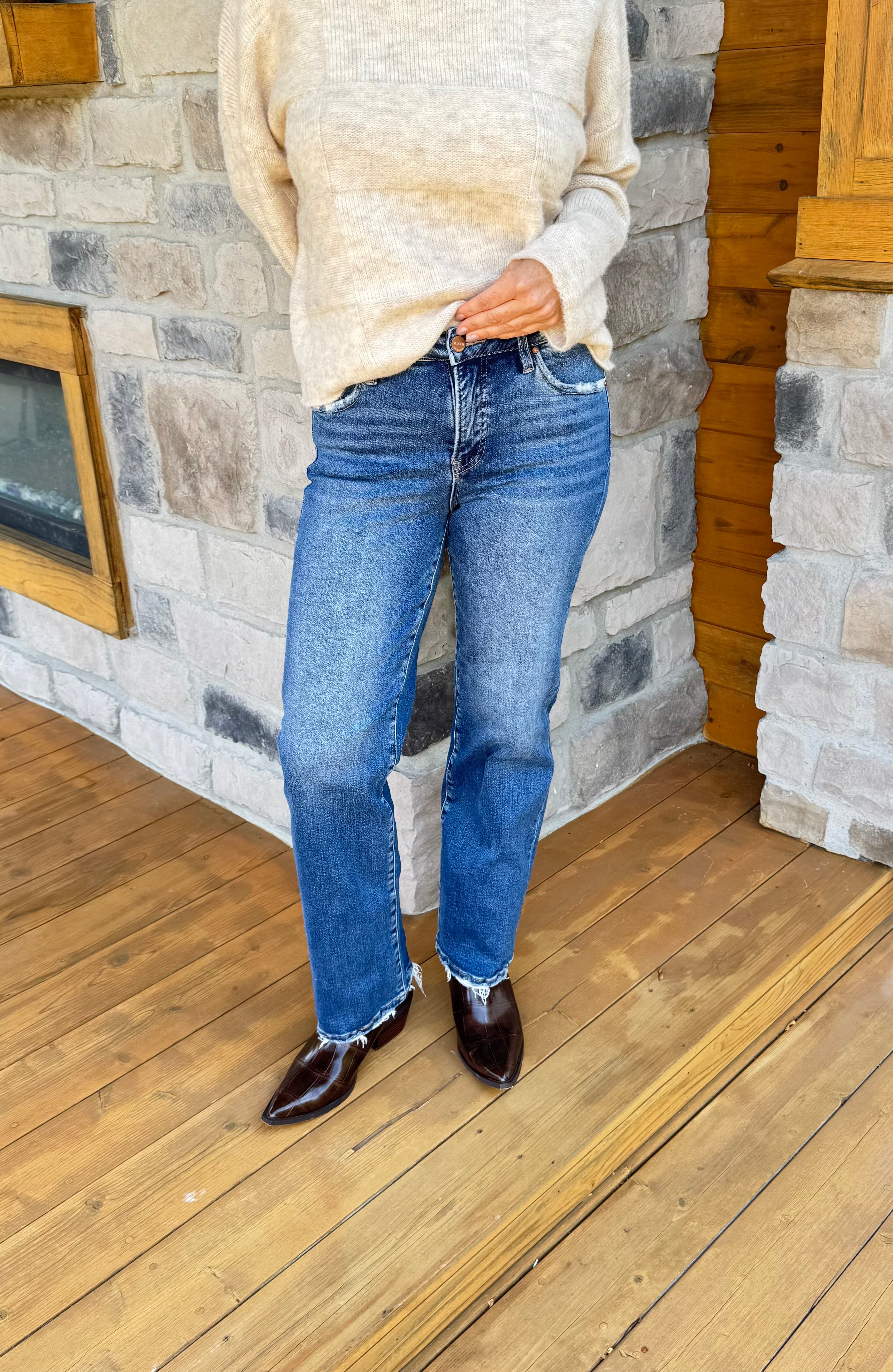 High Rise Tummy Control Ankle Straight Jeans
