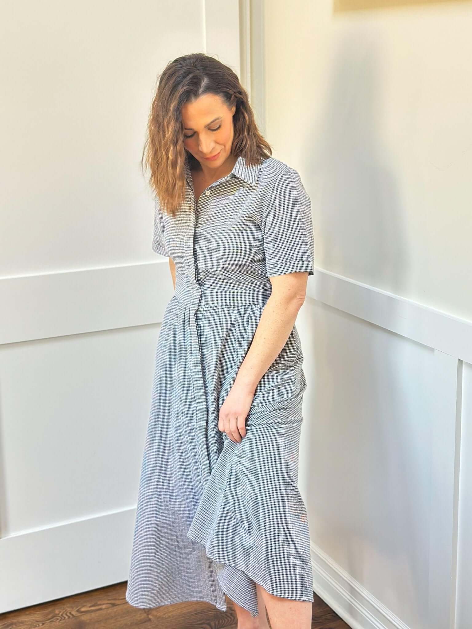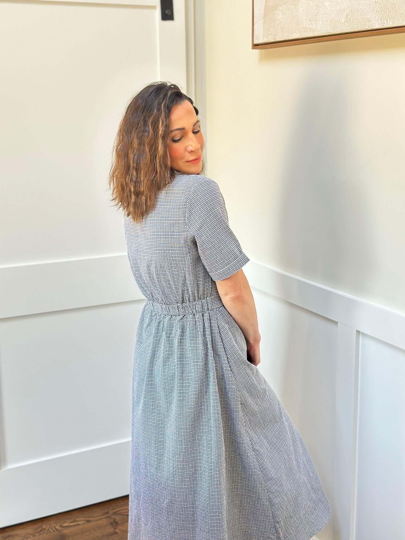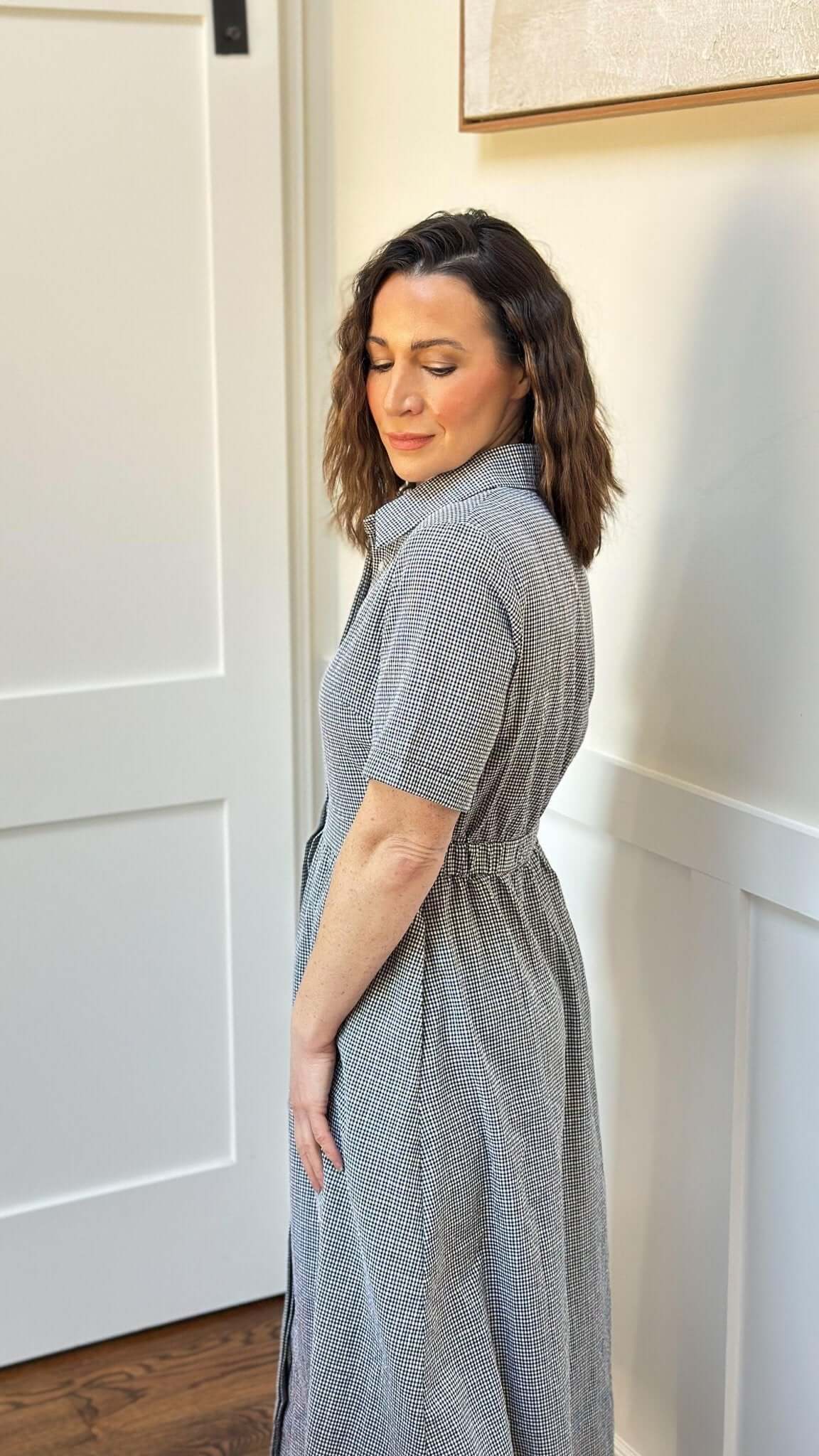 Effortlessly chic and versatile, our Black Short Sleeve Dress features a classic black and white checked pattern and a button collar detail. With a midi length, this dress offers a polished and sophisticated look for any occasion. Stay on trend and stylish in this must-have wardrobe staple.