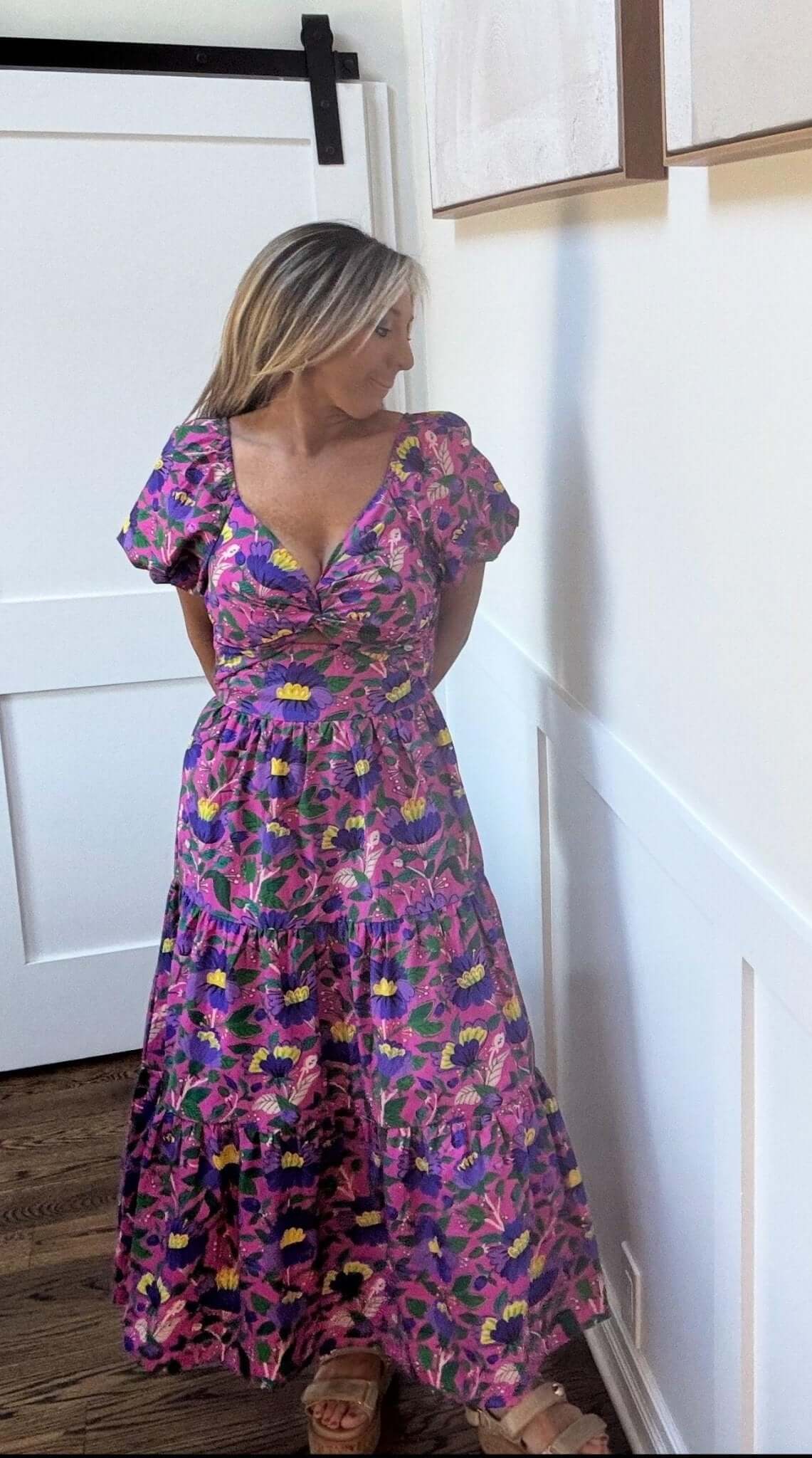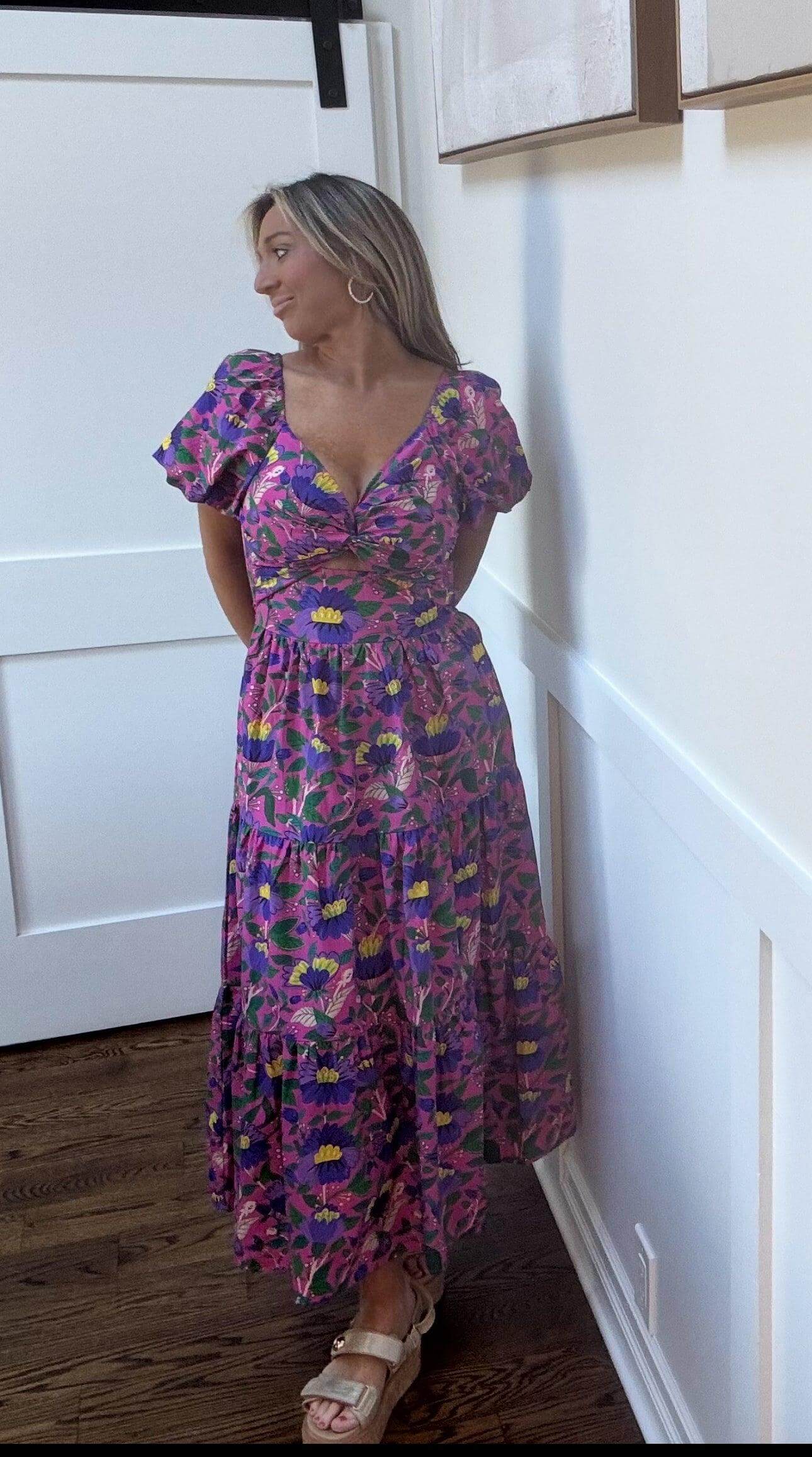 Embrace your playful side with our Floral Fairytale Dress! This flowy, puff-sleeved dress will have you twirling all night. The vibrant purple color and small open center detail with a v-neckline are perfect for showing off your fun, floral side. Dance the night away in this unique dress.