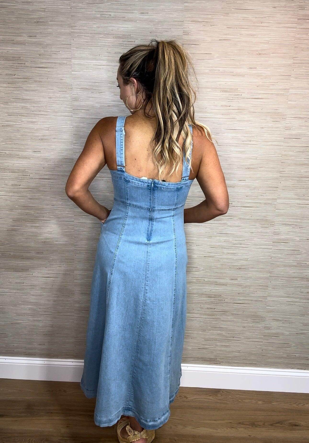 Designed with a sweetheart neckline and adjustable straps, The Jeanine is a midi-length denim dress that guarantees a comfortable and perfect fit. Made from high-quality, durable denim fabric, it is perfect for any occasion. Look and feel your best in this versatile dress.