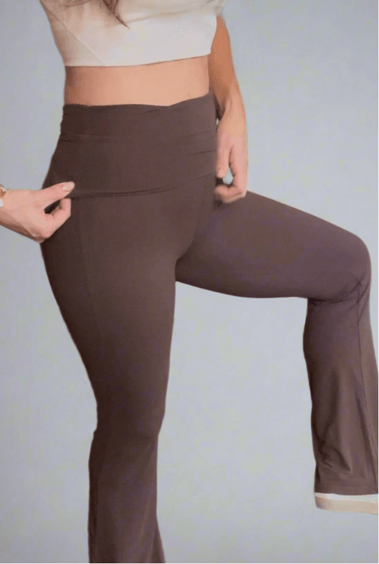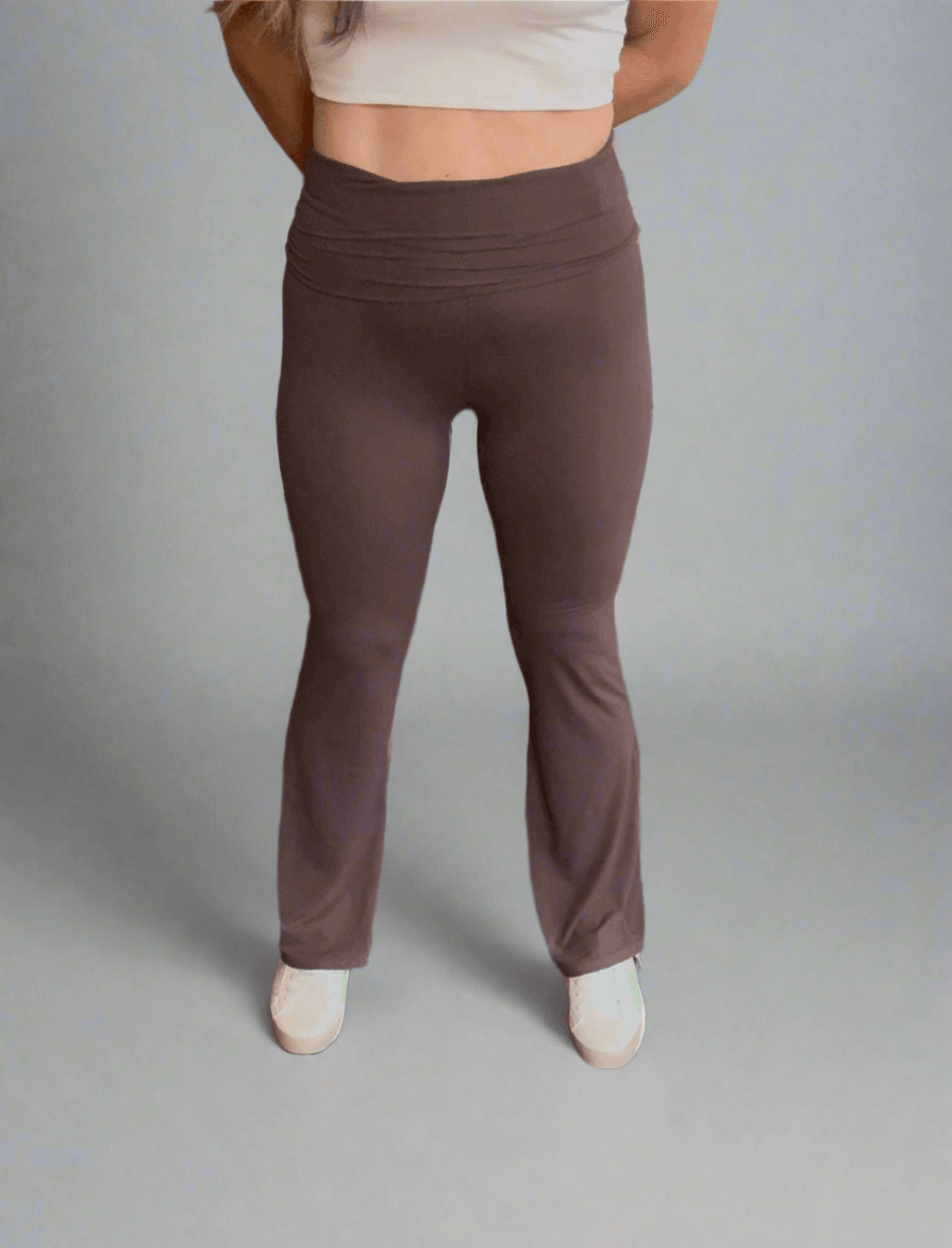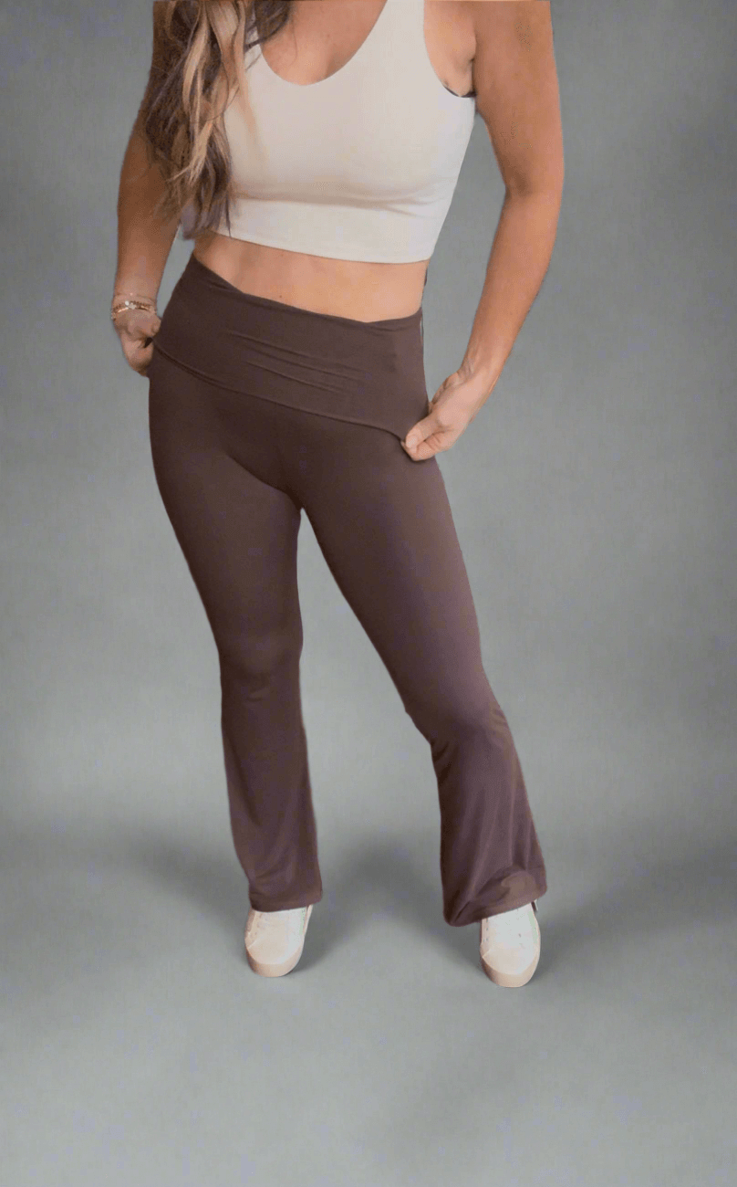 Expertly designed from soft jersey knit material, the Foldover Flare in brown offers a touch of elegance and comfort for any occasion. The foldover flare not only adds a stylish flare to your look, but also provides a cozy and luxurious feel. Perfect for any wardrobe.