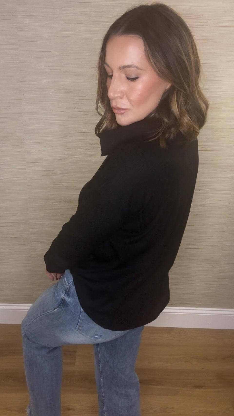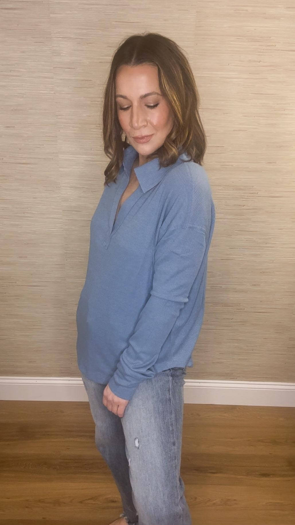 Unleash your style with our Long Sleeve V Neck Pullover Shirt! Available in black or blue, this shirt is perfect for any occasion. Its comfortable fabric and elegant v neck make for a versatile and stylish addition to your wardrobe. Upgrade your look with ease!