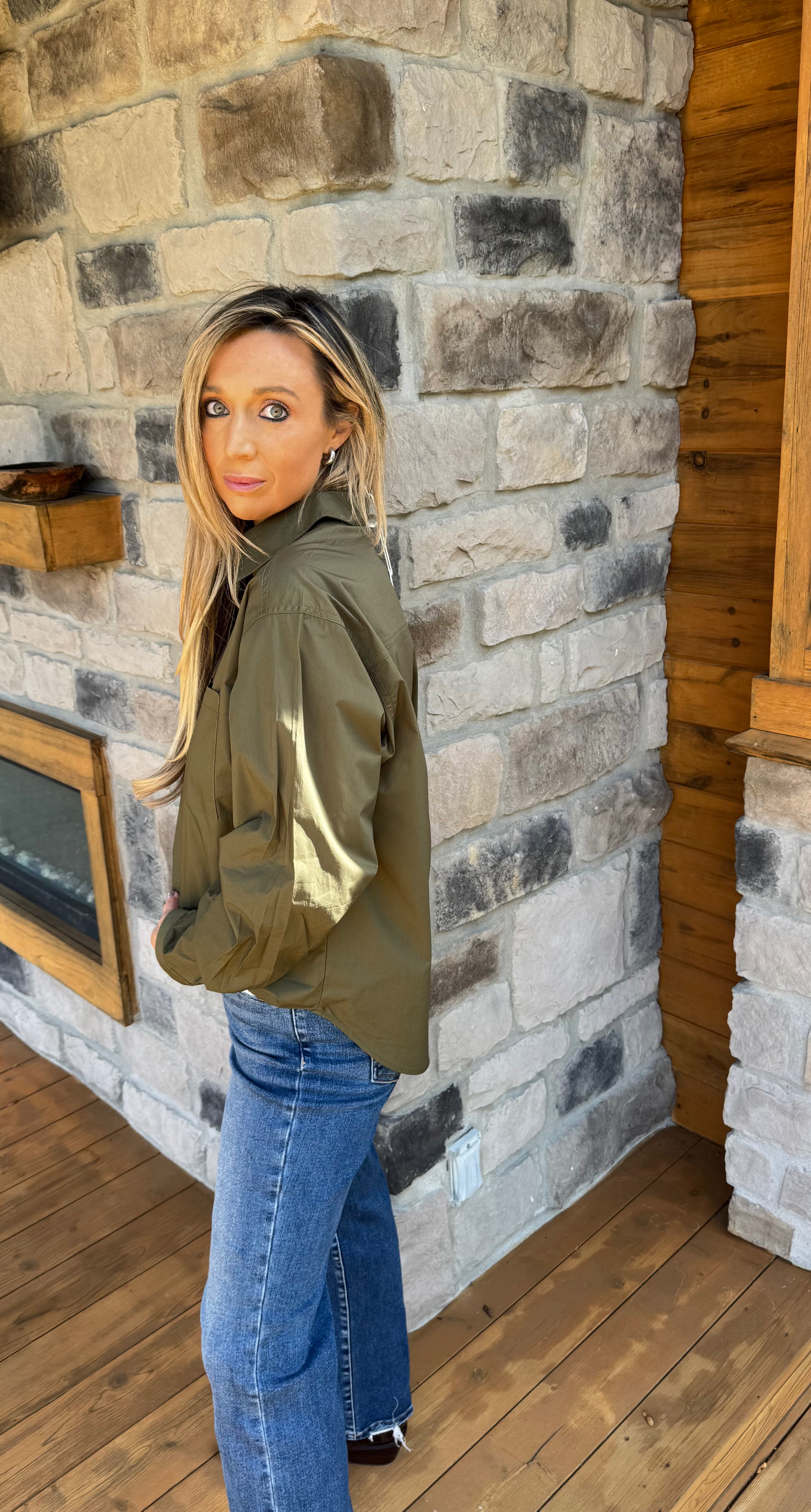The rich olive color adds effortless style to any outfit—wear it on its own, layered over a tank, or tucked into jeans or trousers.