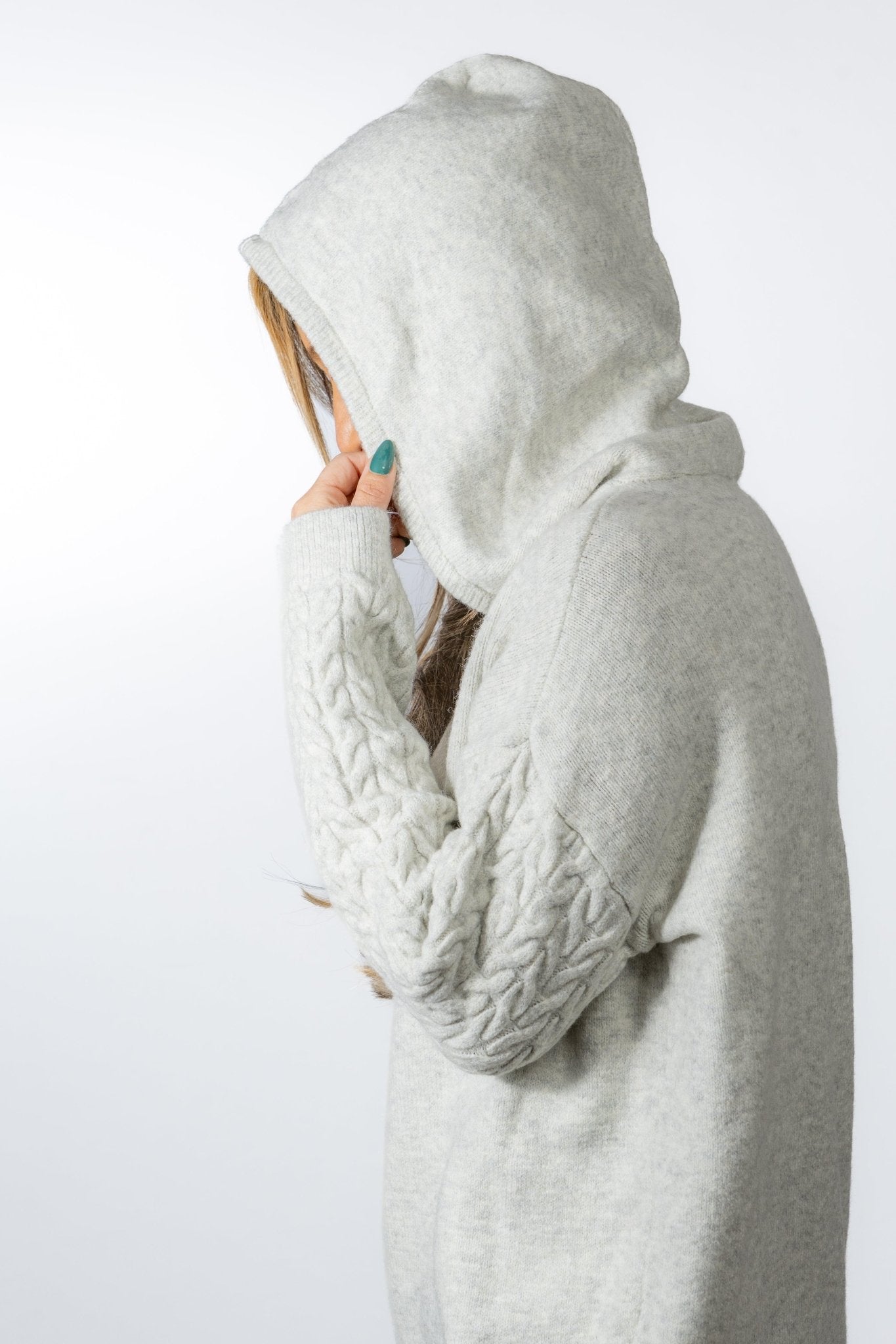 Introducing the Cozy Tunic, the ultimate in comfort and style! This hoodie sweater features a unique cable knit sleeve detail that adds a touch of sophistication to your casual look. Stay warm and on-trend with this must-have addition to your wardrobe. Slay in style. You deserve it.
