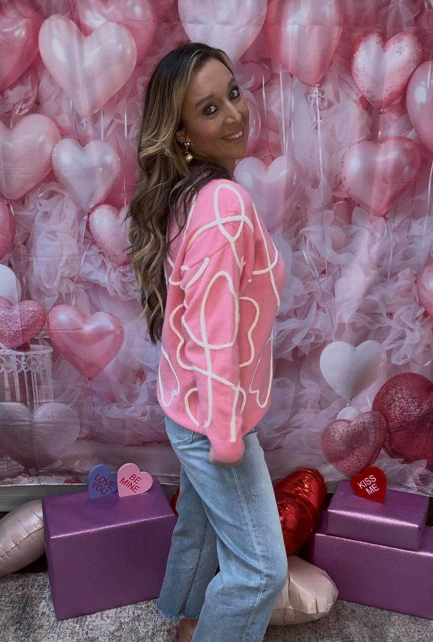 This Pink Heart Sweater features a delicate white heart piping that adds a subtle touch of charm to the overall design. Made with a soft pink fabric, this sweater is perfect for adding a feminine and stylish touch to your winter wardrobe.