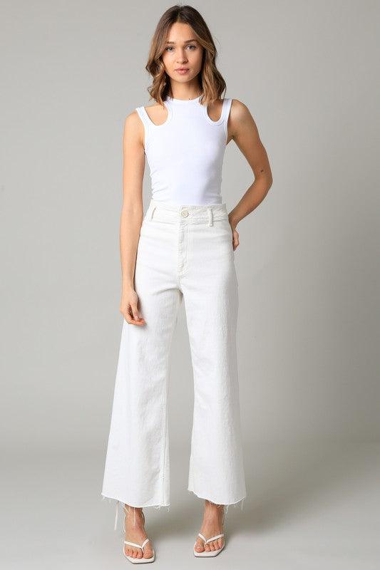 Our Stellar Top features a shoulder cut outs and a rib knit.