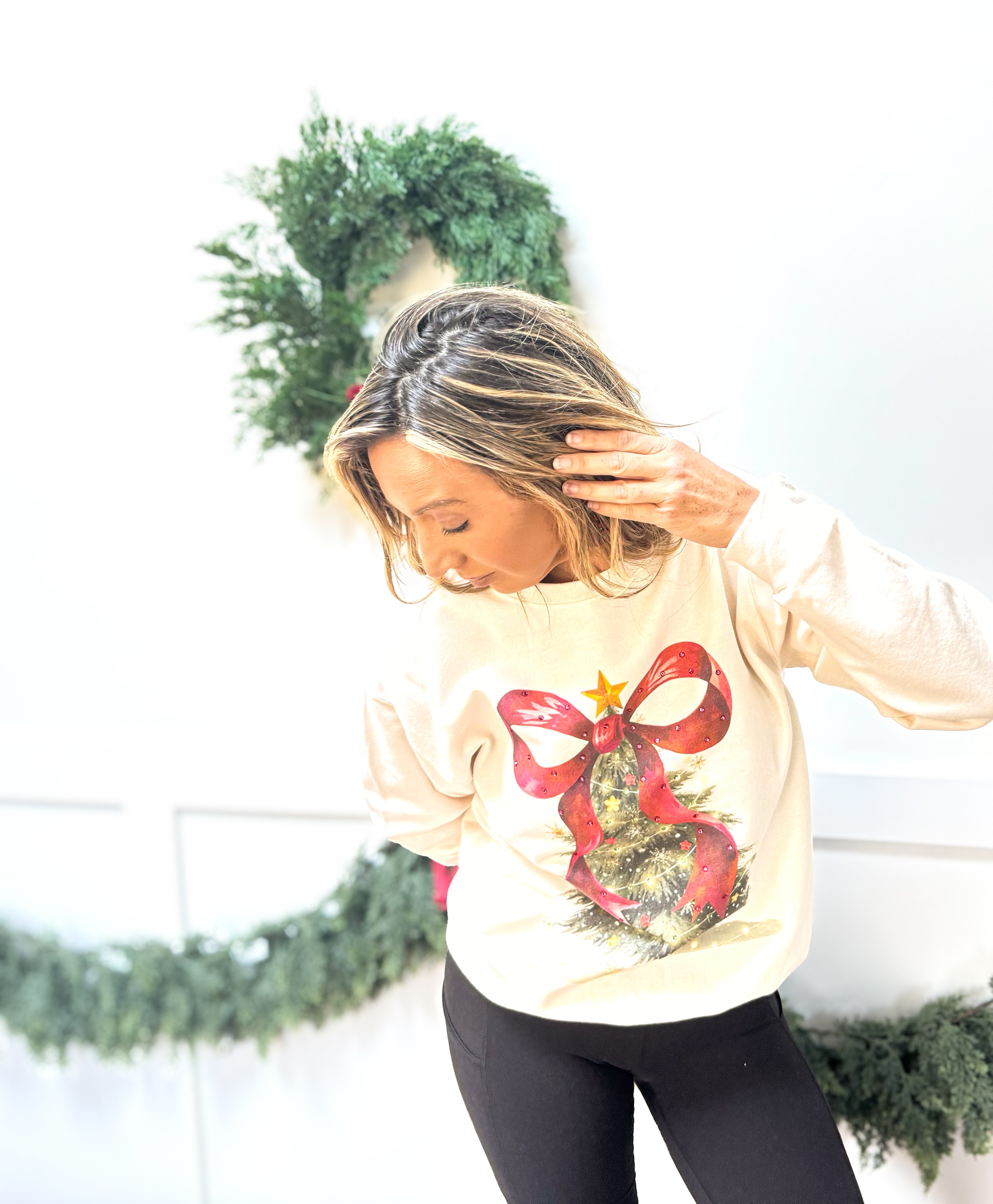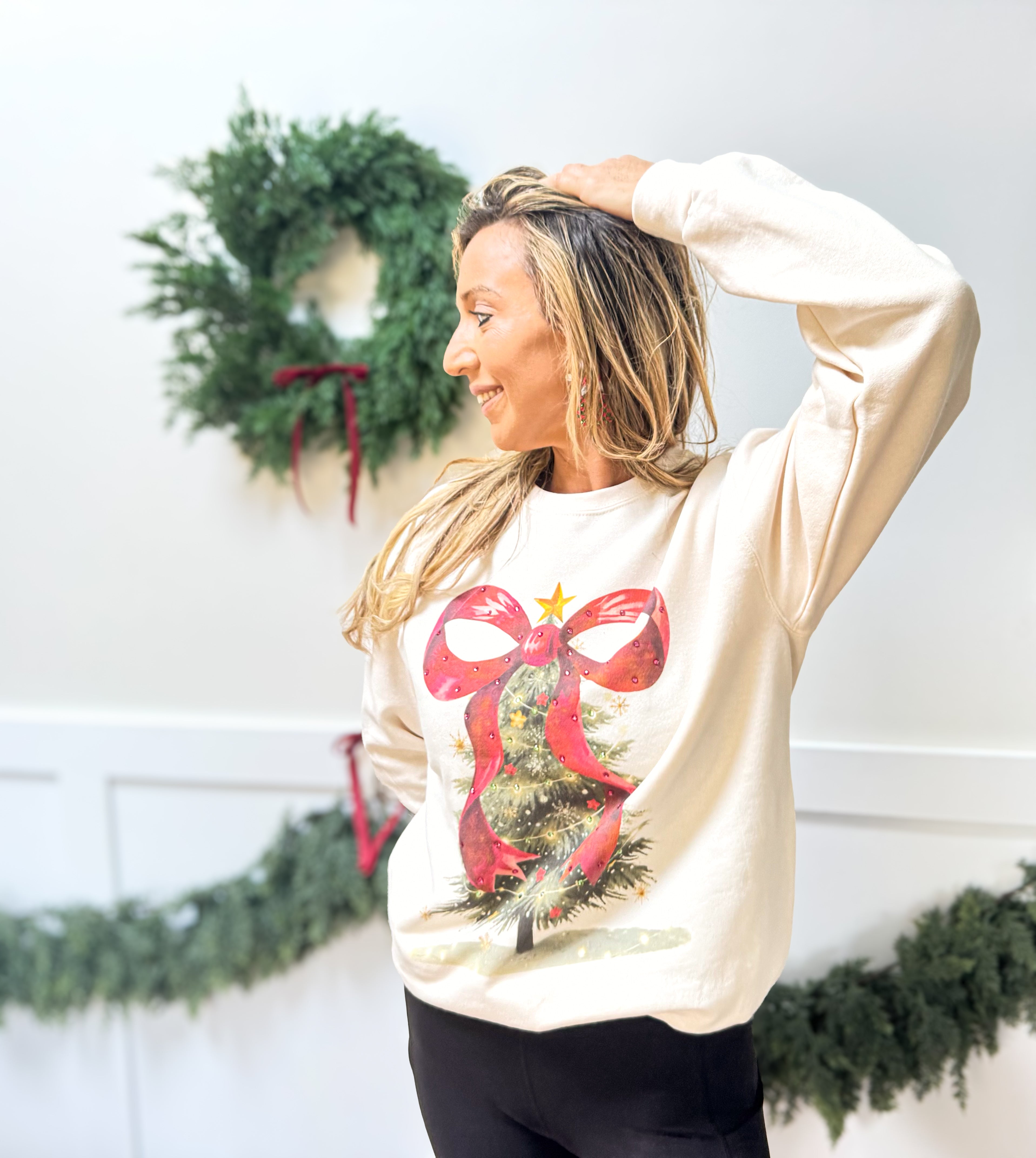 Cream fleece sweatshirt featuring a vintage Christmas tree graphic