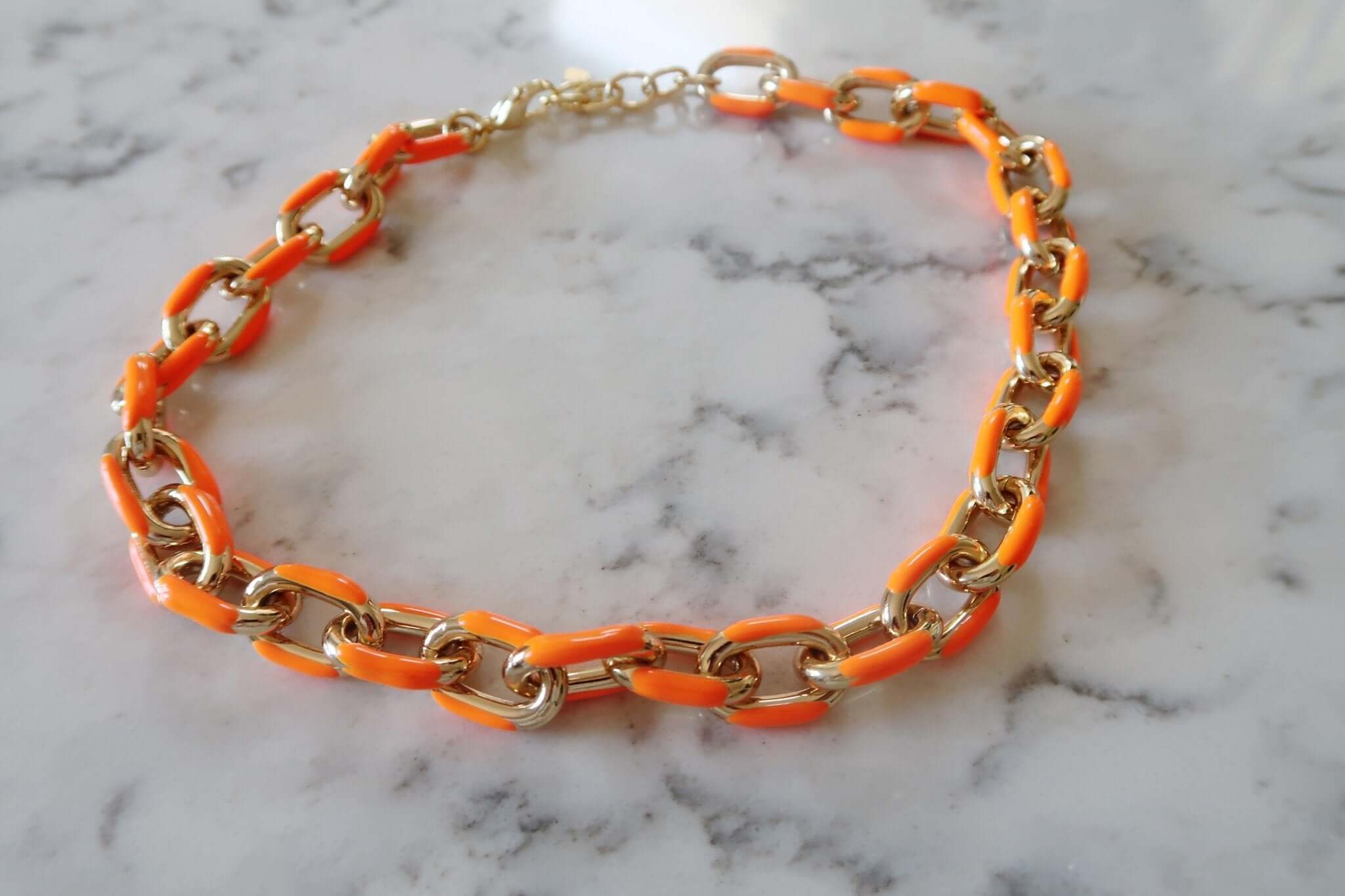 Get hooked on our Enamel Paperclip Chain! This unique chain features paperclip-inspired links paired with colorful enamel accents. Perfect for adding a playful touch to any outfit, this chain is sure to be a conversation starter. Plus, its lightweight design makes it easy to wear all day long.