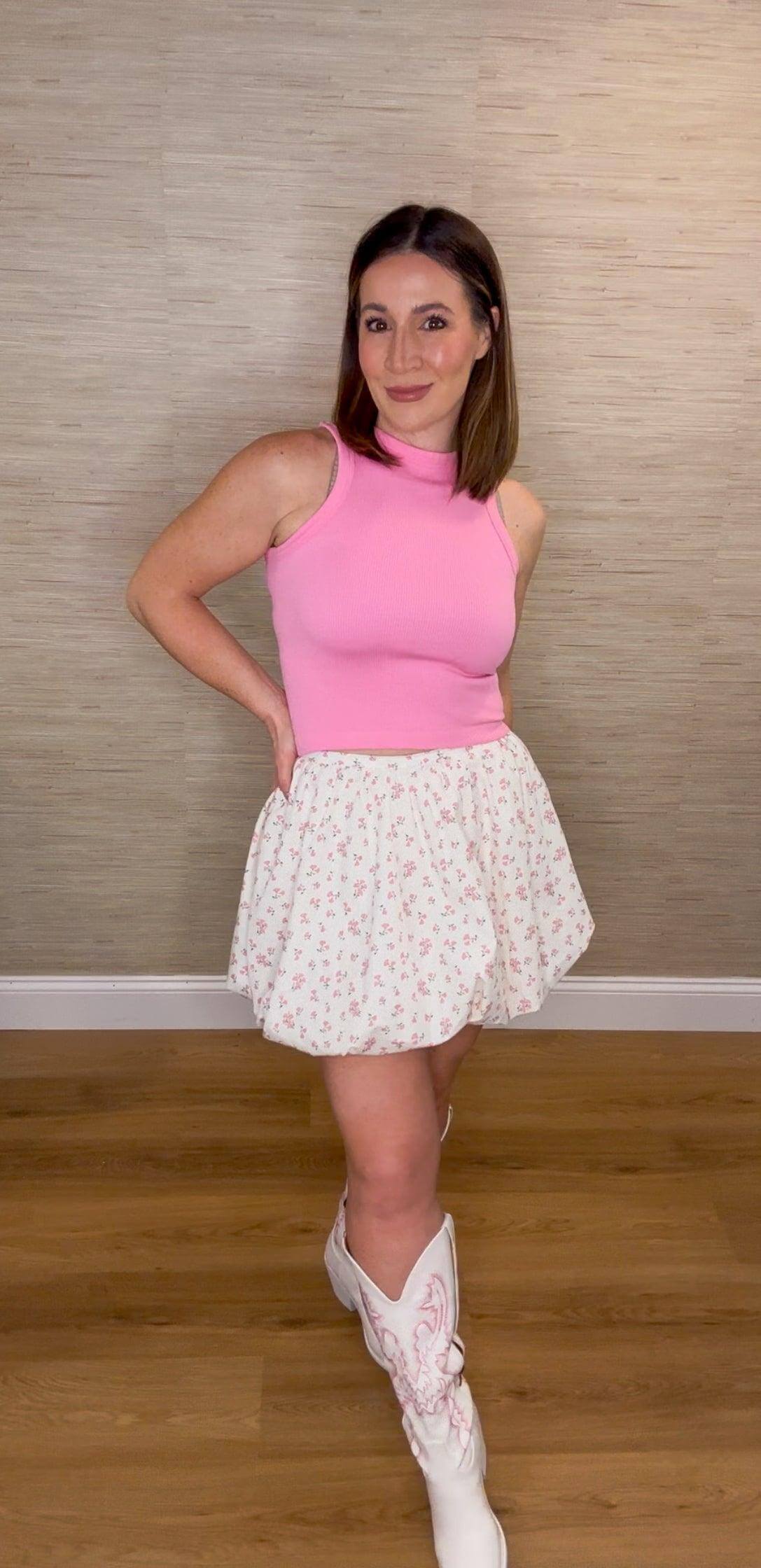 This Ivory and pink floral bubble skirt is not only on trend, but also a versatile addition to any wardrobe. The playful print adds a touch of femininity, making it perfect for any occasion. Pair it with a blouse for a polished look or a graphic tee for a casual outfit.