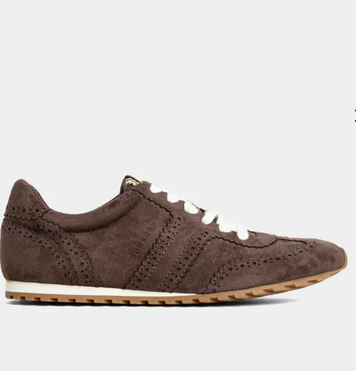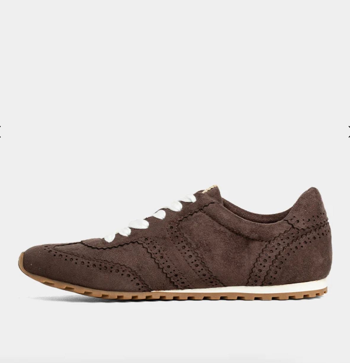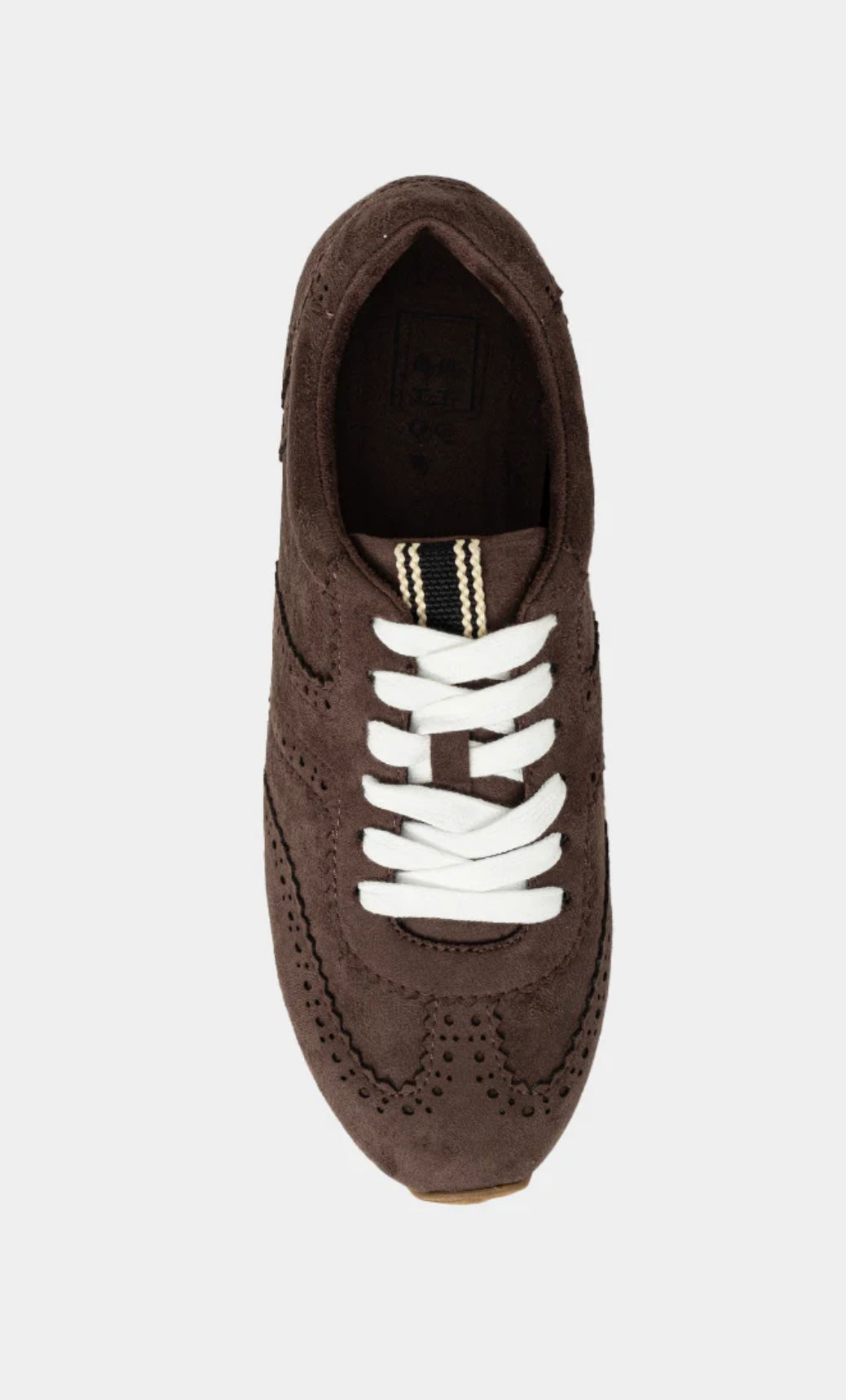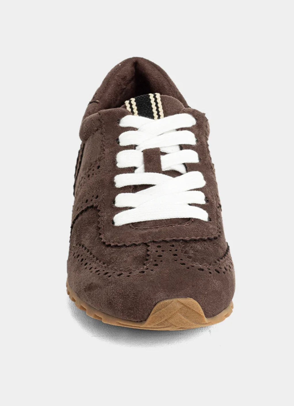 Retro charm, redefined. The PENELOPE sneaker in rich brown suede-texture brings a grounded, heritage feel to your wardrobe. With its brogue-style perforations, contrast laces, and low-profile silhouette, this style effortlessly blends sporty and sophisticated energy. Dress it up with tailored denim or keep it casual with wide-leg trousers-this one’s built for versatility.