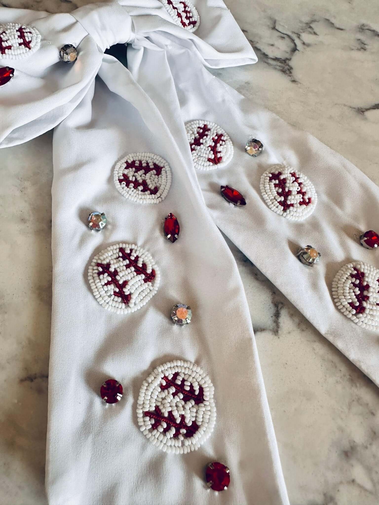 Add a sporty twist to any outfit with our Baseball Bow! This playful accessory features a unique design inspired by the classic baseball, adding a touch of fun and athleticism to your look. Perfect for a day at the ballpark or just running errands. Batter up!