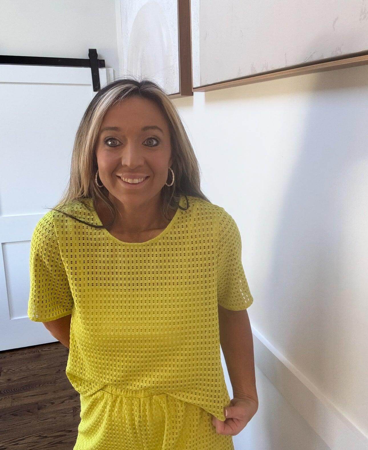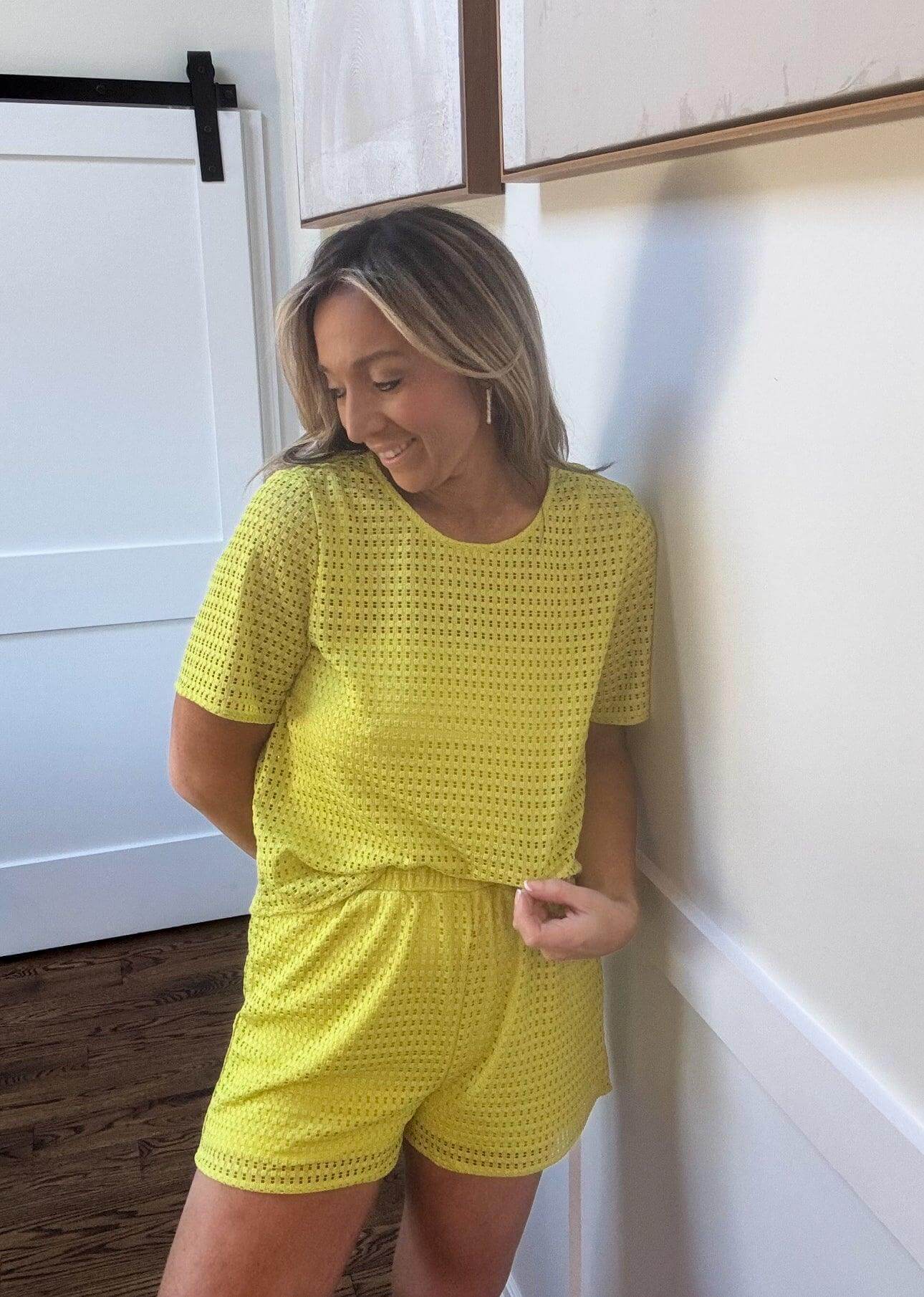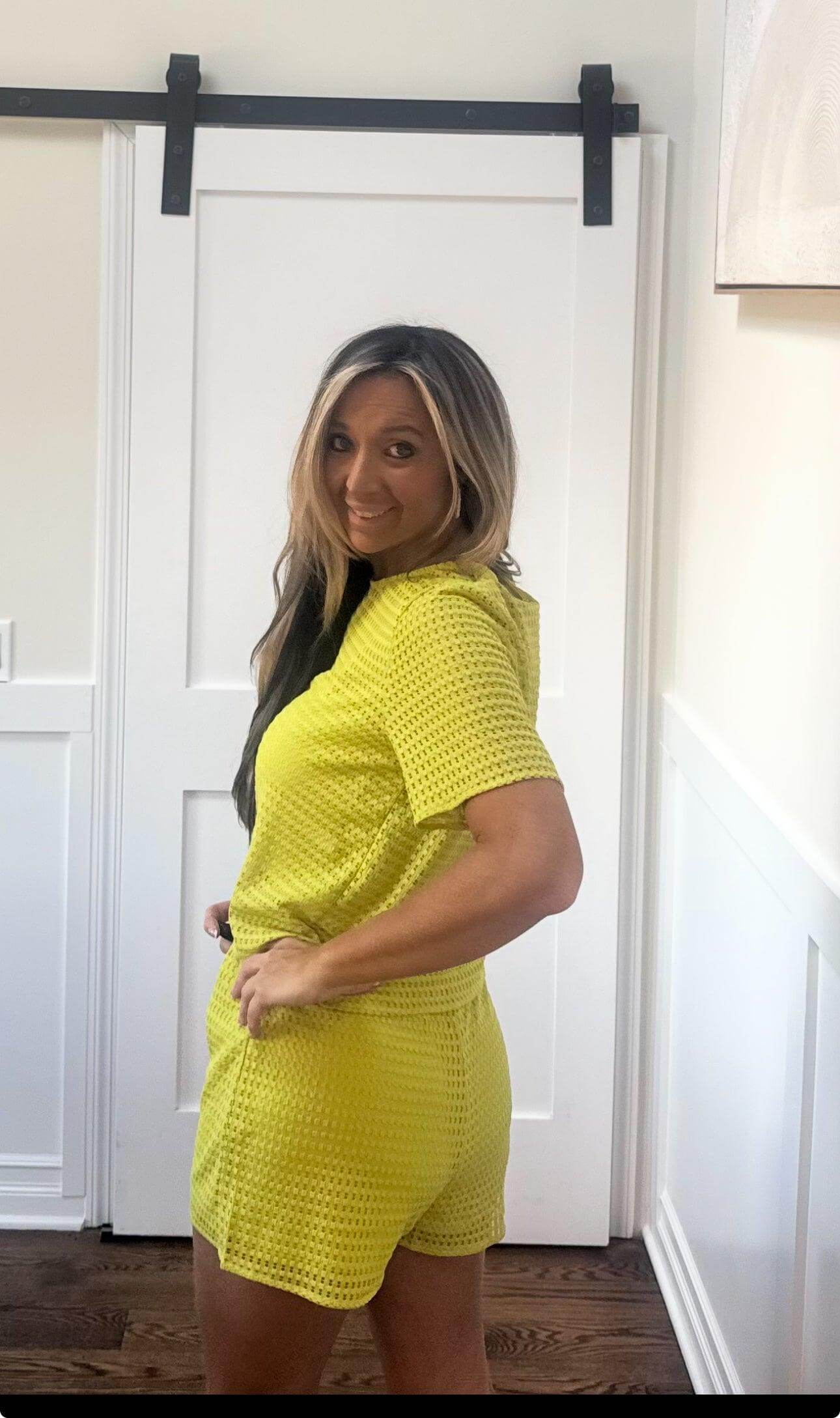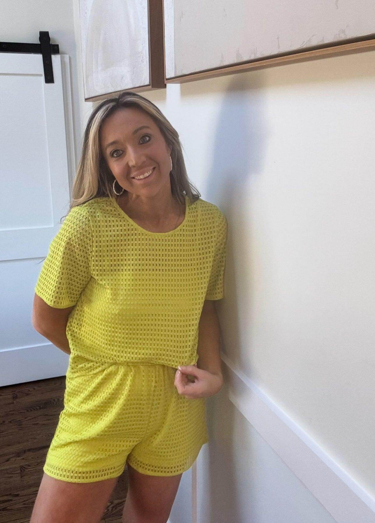 Unleash your laid-back vibes with the Lime Honeycomb Set. Perfect for relaxing days or resort adventures, this textured knit top and shorts duo keeps you cool and comfortable. Its breathable open weave fabric and easy elastic waistband make it a must-have for vacation style or effortless chic looks. Weekend brunch, here we come!