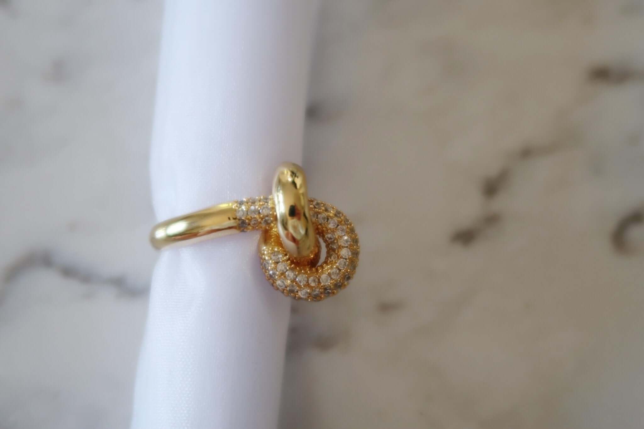 Get ready to tie the knot with our CZ Knot Ring! This unique ring adds a touch of whimsy to any outfit with its playful design. The cubic zirconia stones add a touch of sparkle, making it the perfect accessory for any occasion. Say "I do" to this knot ring today!