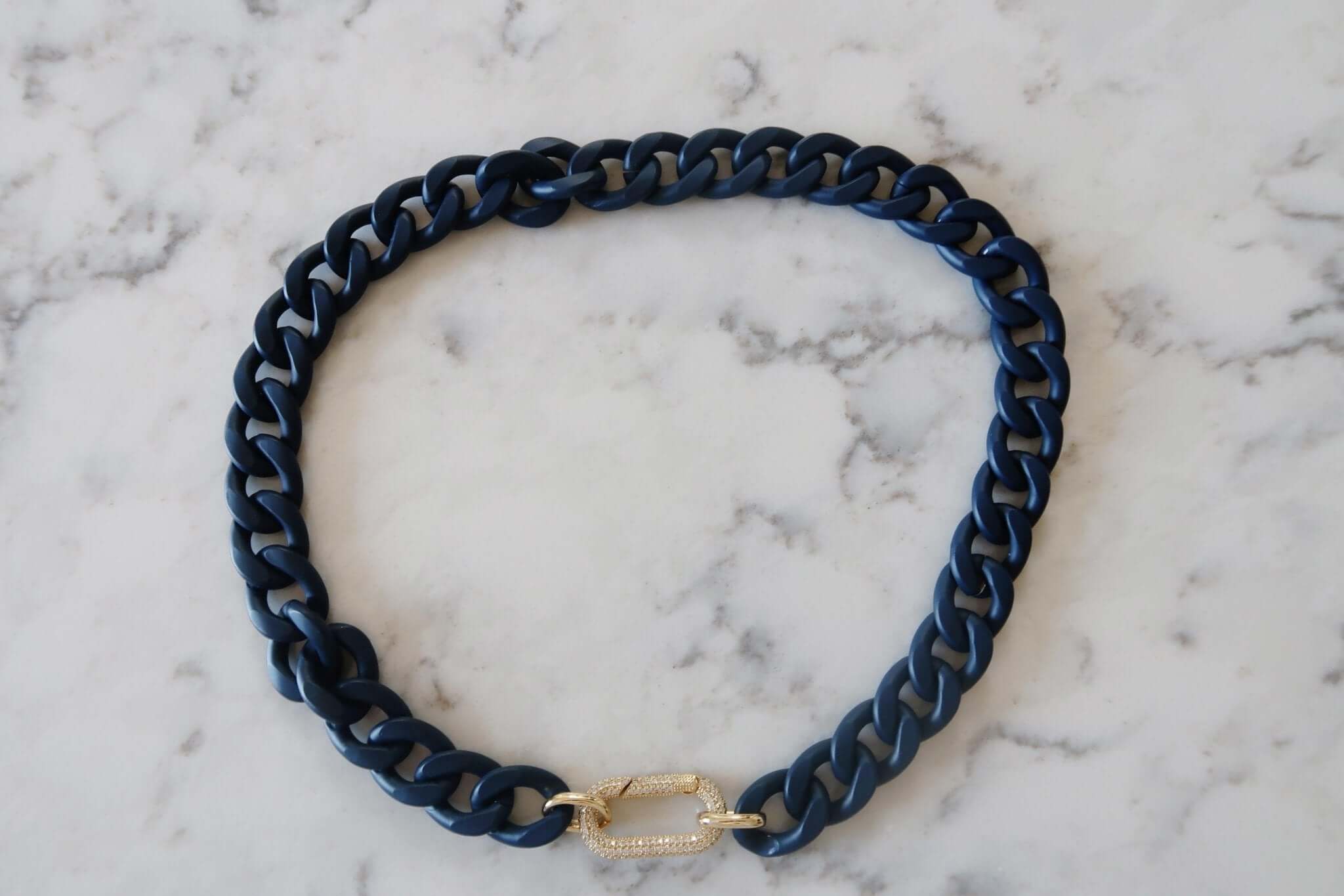 Elevate your style with our Enamel Chain featuring a sparkling CZ Carabiner! Add a touch of playfulness to any outfit with this quirky and unique accessory. Embrace the unexpected and turn heads with this statement piece. Elevate your fashion game with this must-have jewelry item.