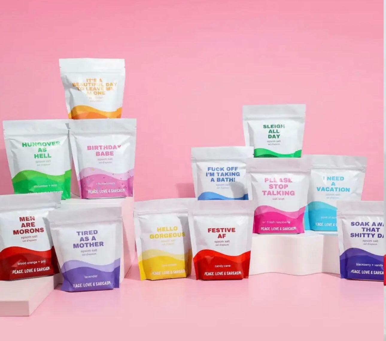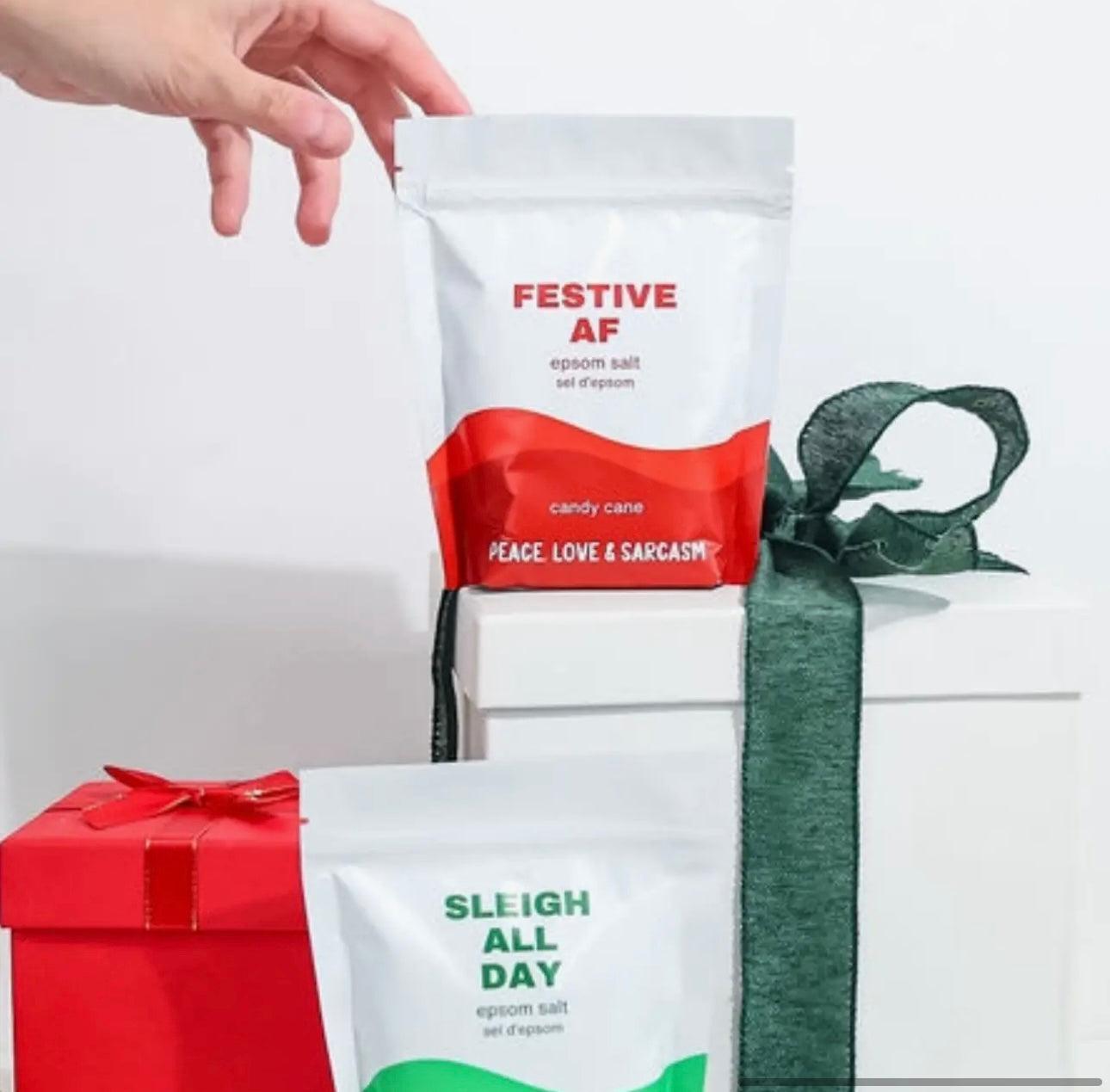 Sleigh all day with our indulgent Epsom Salt Bath Soak! Relax and rejuvenate with this fun and snarky blend that will leave you feeling refreshed and ready to tackle the day. Simply pour, lock the door, and soak away your stress with your favorite drink.