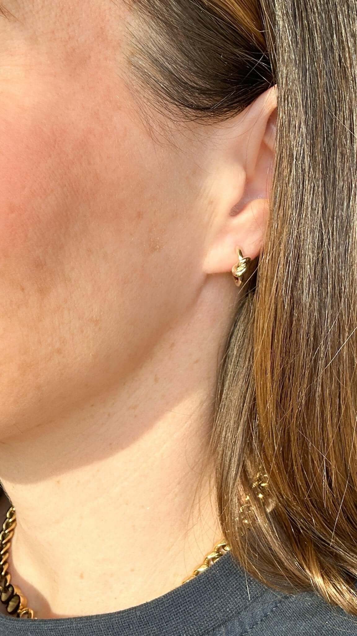 Add an elegant touch to your look with our Knot Brass Huggie Earrings. These sophisticated brass earrings feature a unique knot design that will elevate any outfit. With their secure huggie closure, they are comfortable to wear all day long. Perfect for adding a touch of luxury to your ensemble.