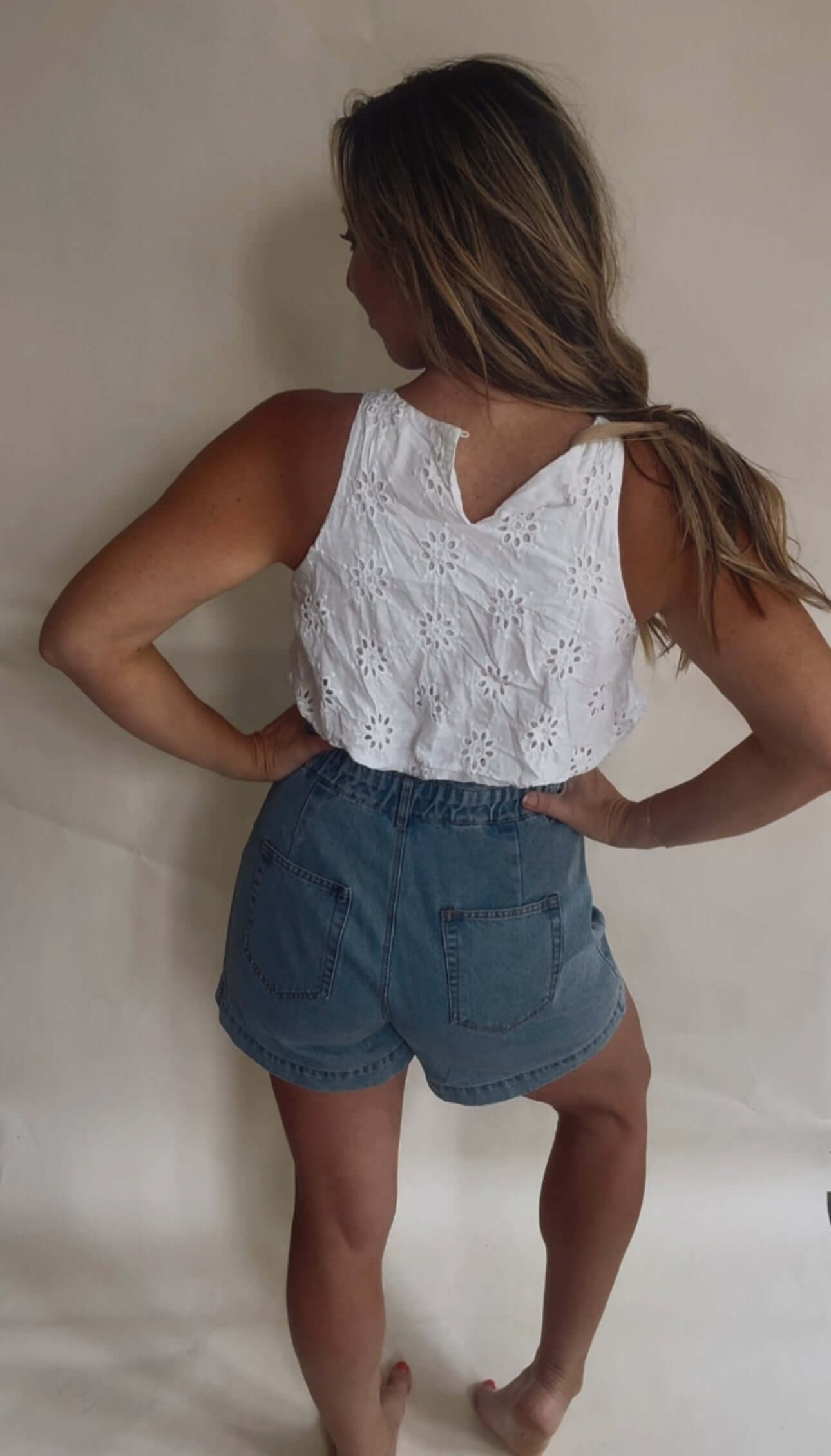 These Paper Bag Jean Shorts combine the breezy comfort of shorts with the stylish touch of a paper bag waistline. Made with comfortable and durable denim, these shorts are perfect for any casual occasion. With a flattering high-waisted fit and convenient pockets, these shorts are a must-have addition to your summer wardrobe.