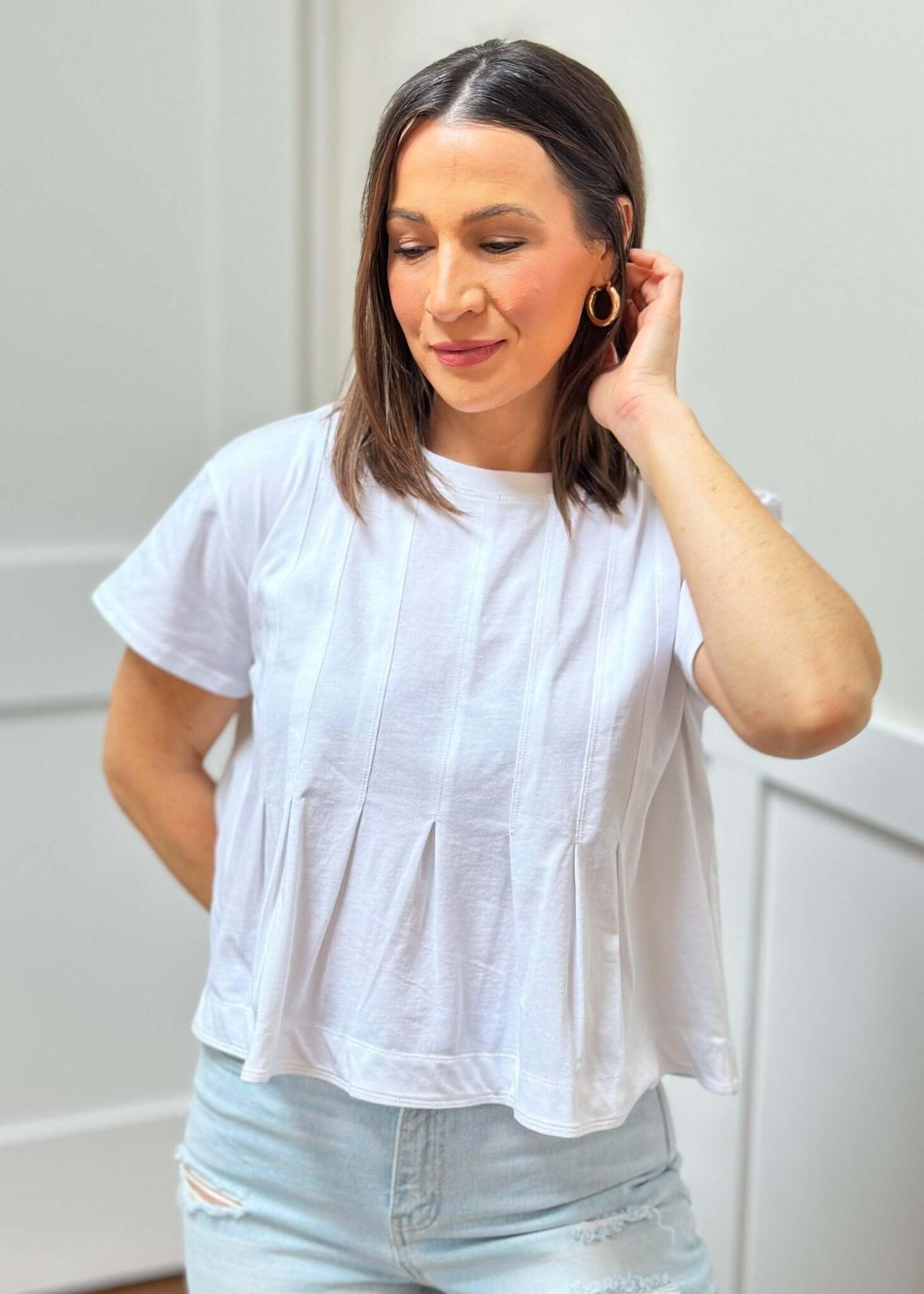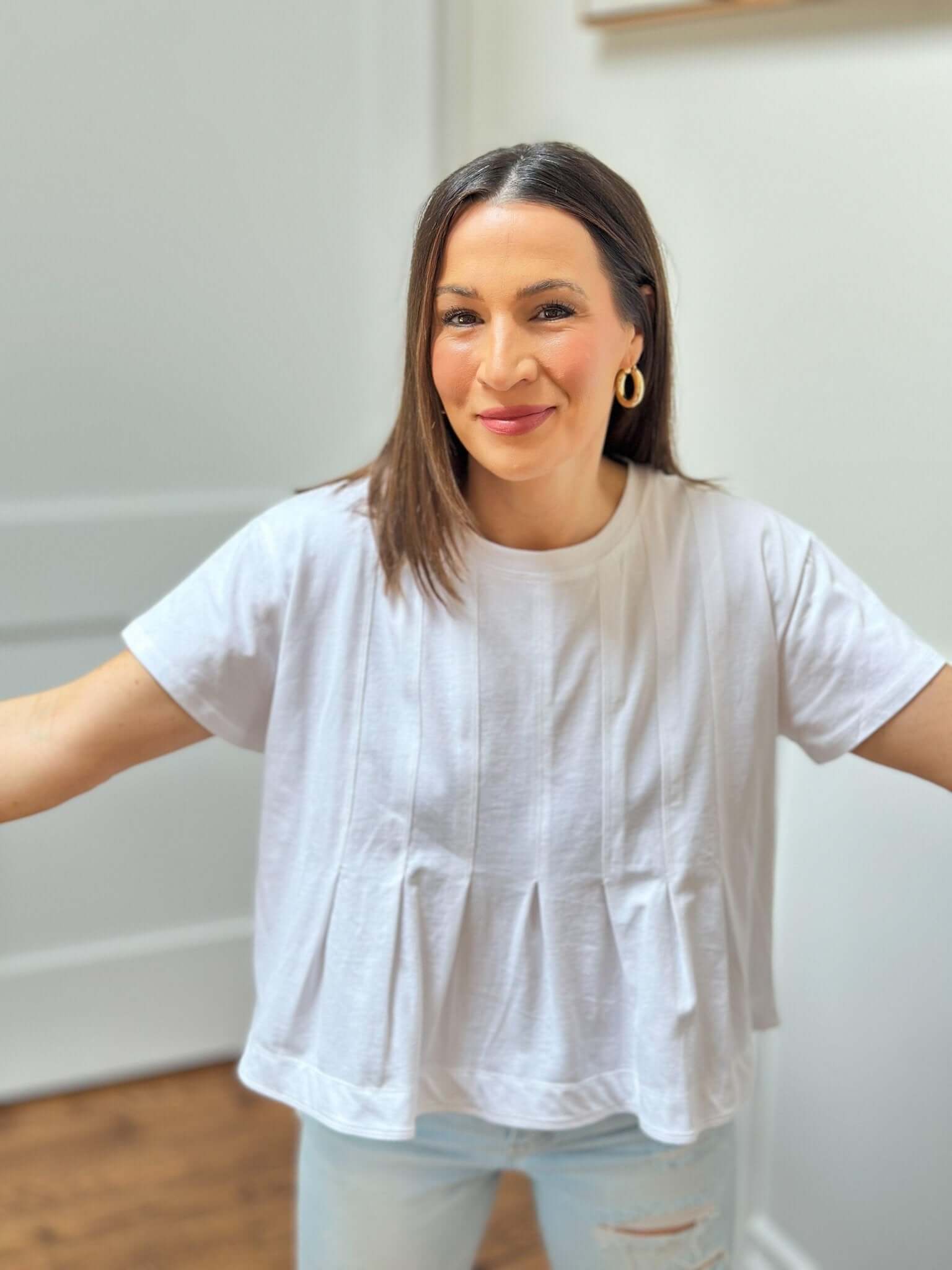 Expertly designed for comfort and style, our Pleated Knit Top features a modern pleated design and short sleeves. Made from high-quality knit fabric, this top is the perfect addition to any wardrobe. It's versatile enough for any occasion and sure to keep you looking and feeling your best.