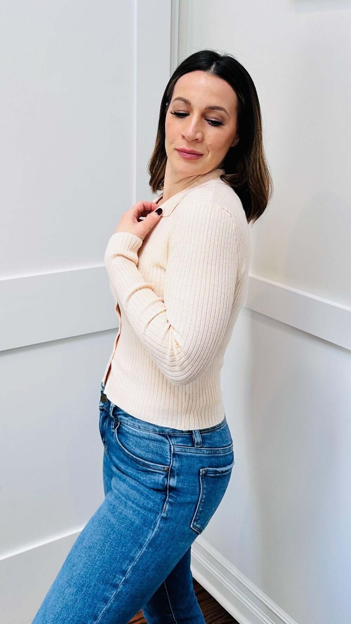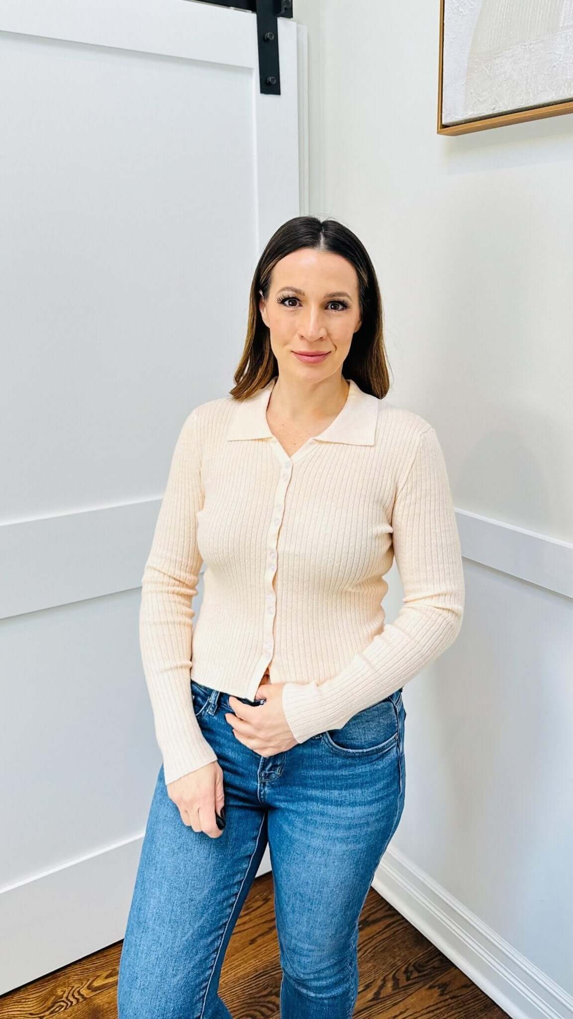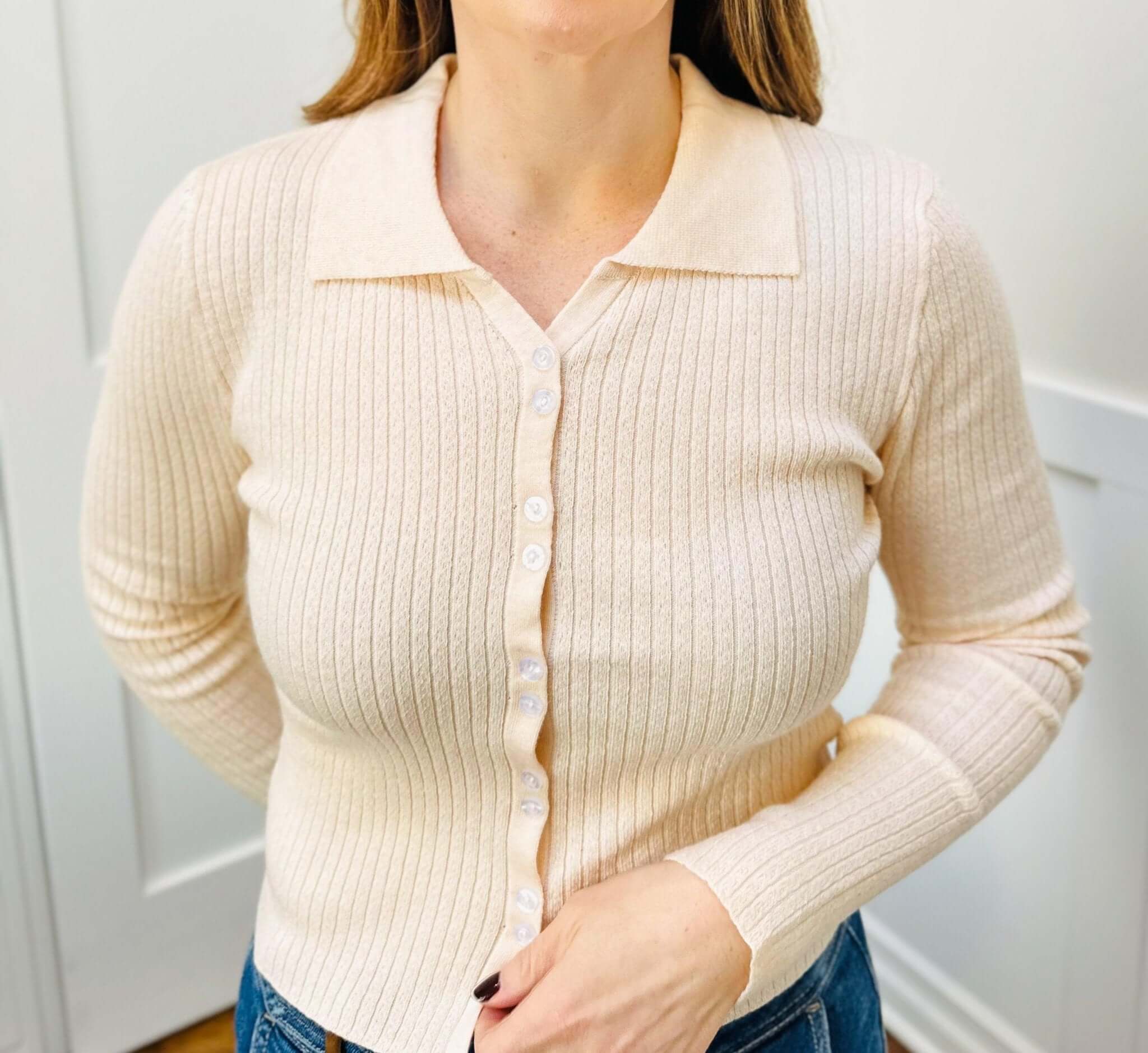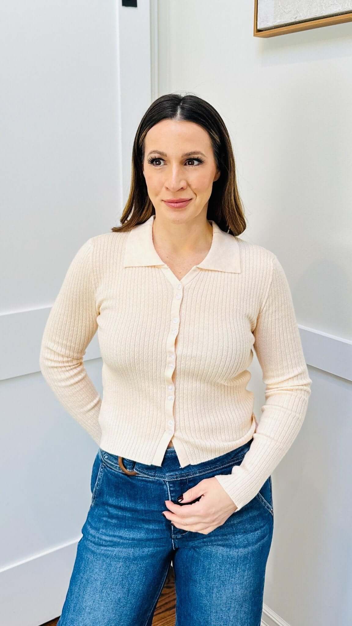 This ribbed knit button down cardigan combines classic style with comfort. The ribbed knit provides warmth and stretch, while the button down front adds versatility. Perfect for layering or wearing on its own, this cardigan is a must-have for any wardrobe.