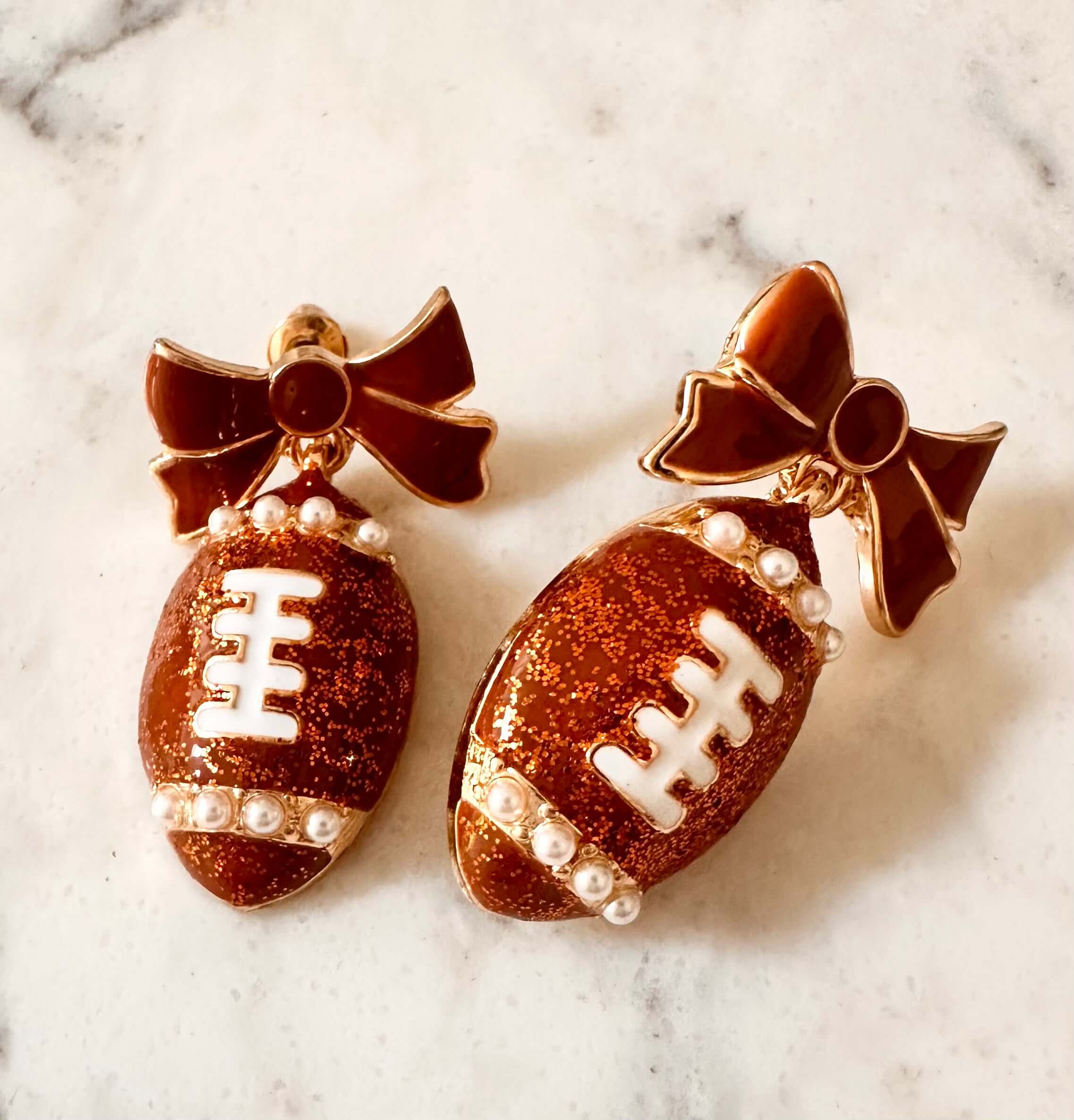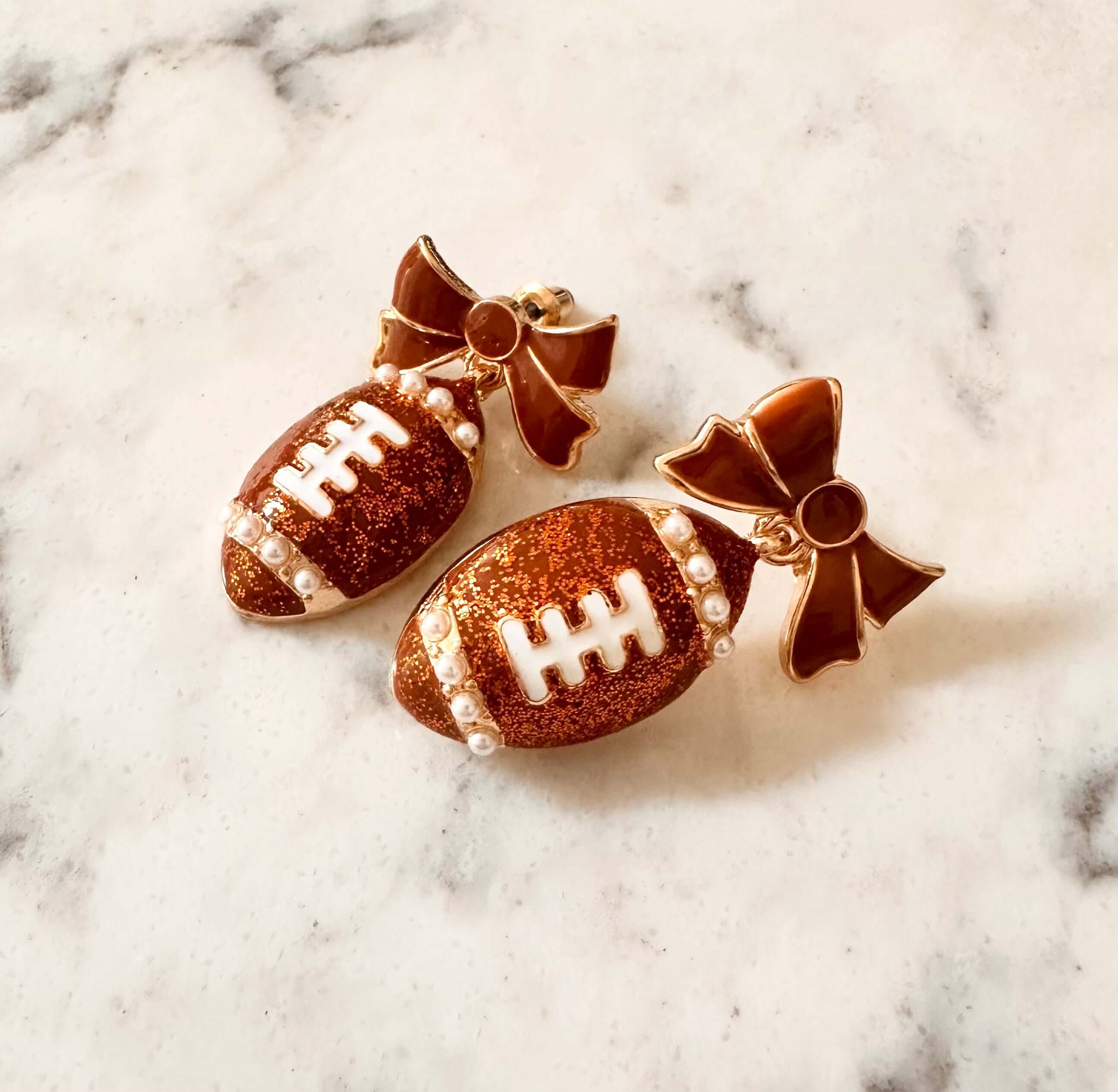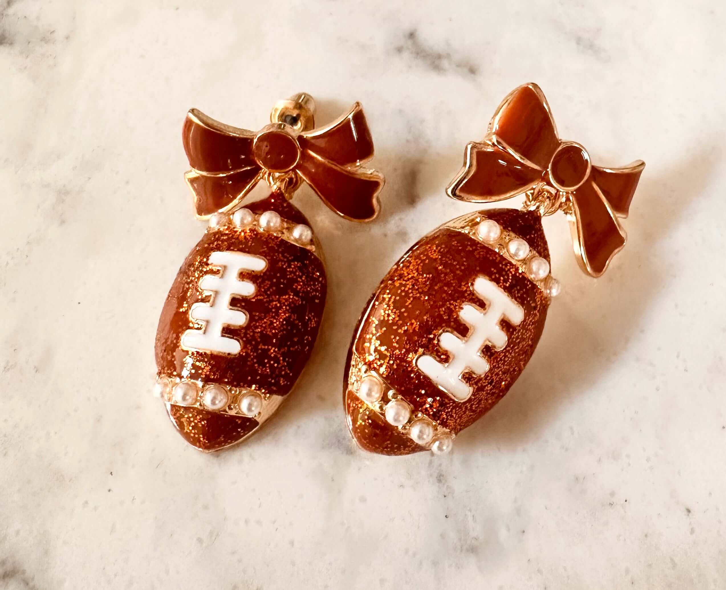 Score a touchdown with these quirky and playful football earrings. Perfect for game day or any day, these earrings will be sure to catch everyone's attention. Show off your love for the sport in a unique and stylish way. Go long and add these to your jewelry lineup!